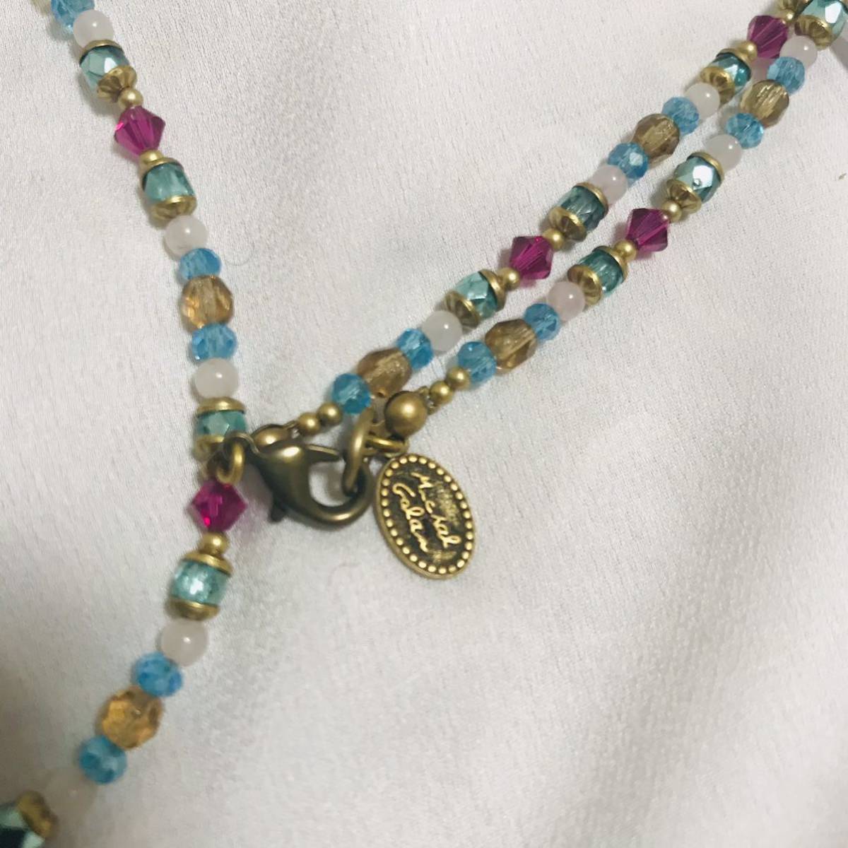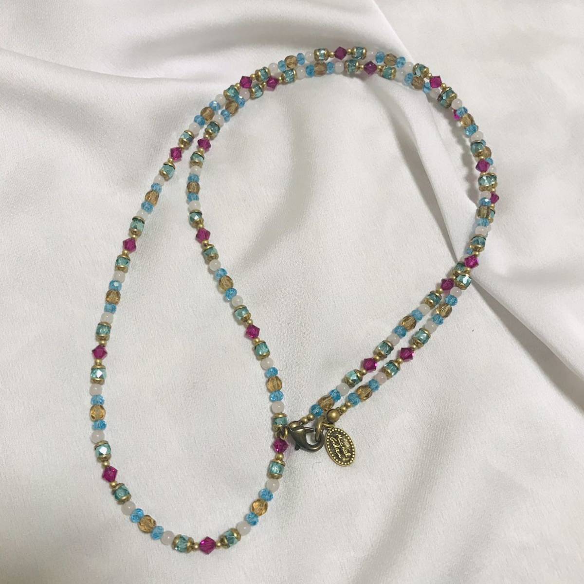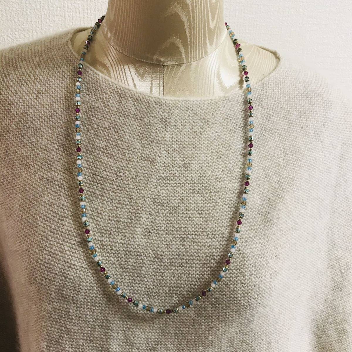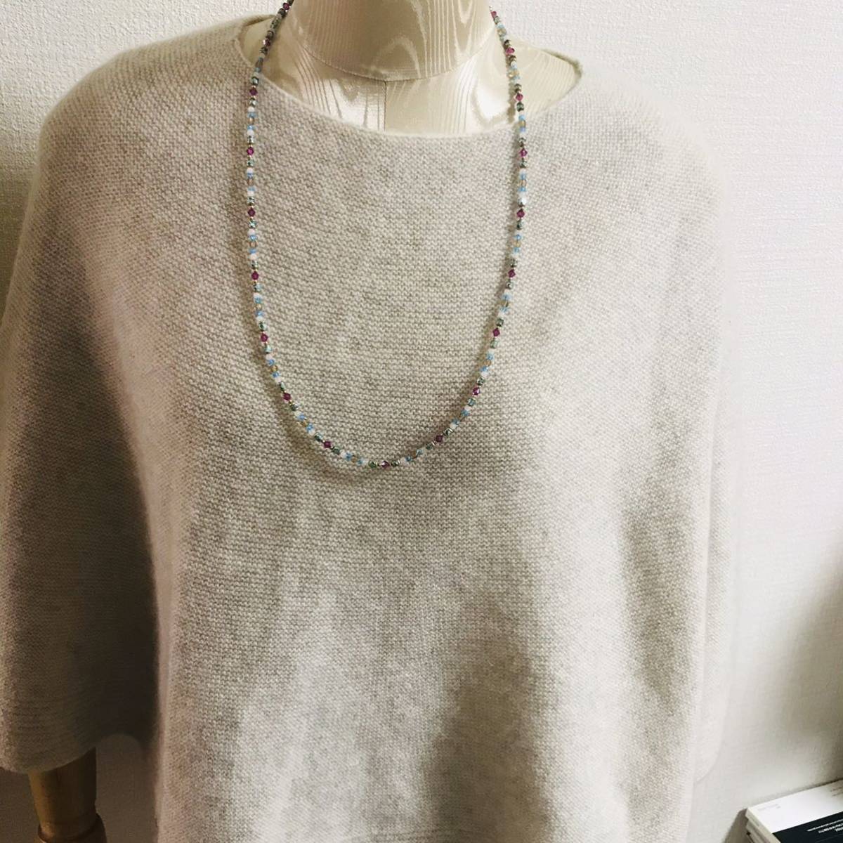 色合いがとてもロマンティックでそのデザインの魅力に惹き込まれるネックレス です。シンプルな装いに少し華を添えることができます。細身で繊細な雰囲気です。