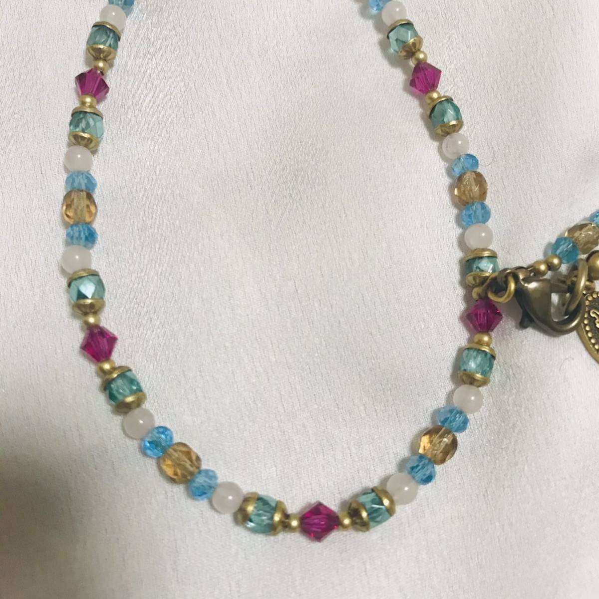 彼女の作品はハンドメイドジュエリーで、24金メッキ。真鍮やホワイトメタルの上にゴールドやシルバーでメッキしています。淡水パールや、スワロフスキークリスタル、ガラスなどのセミプレシャスジュエリー で構成されています。