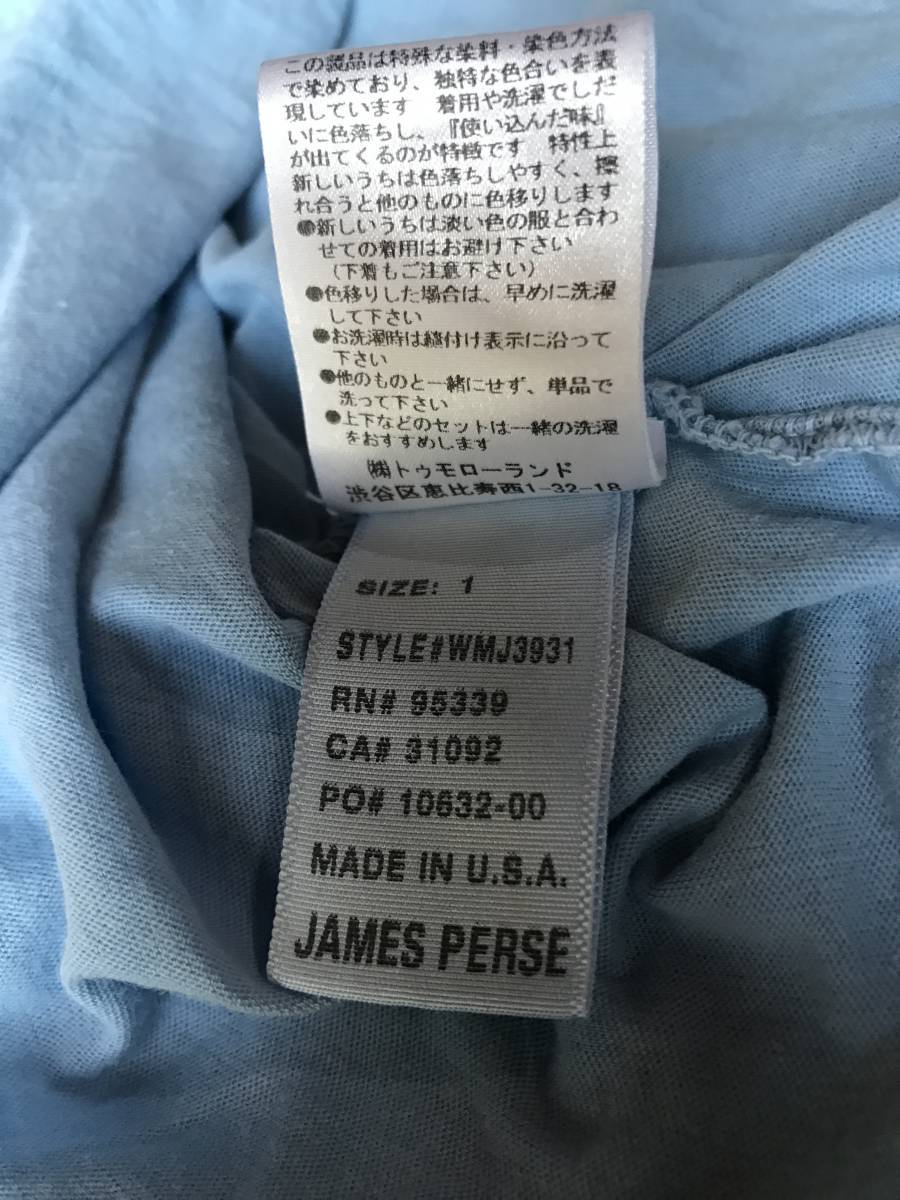 JAMES PERSE ジェームスパース VネックTシャツ サイズ1 ブルーグレー コットン MADE IN U.S.A.