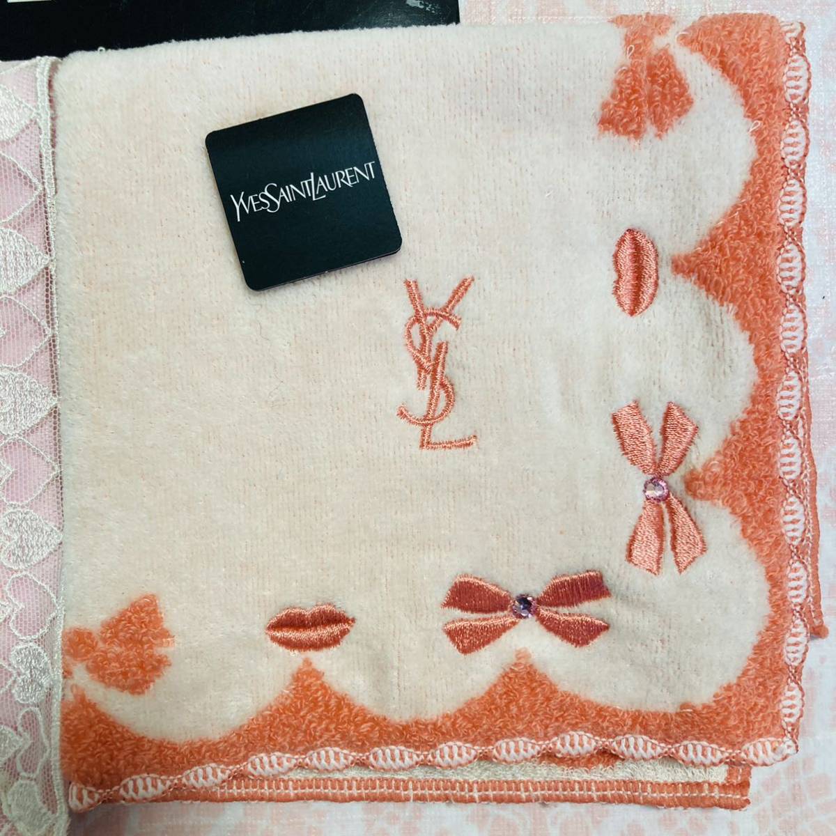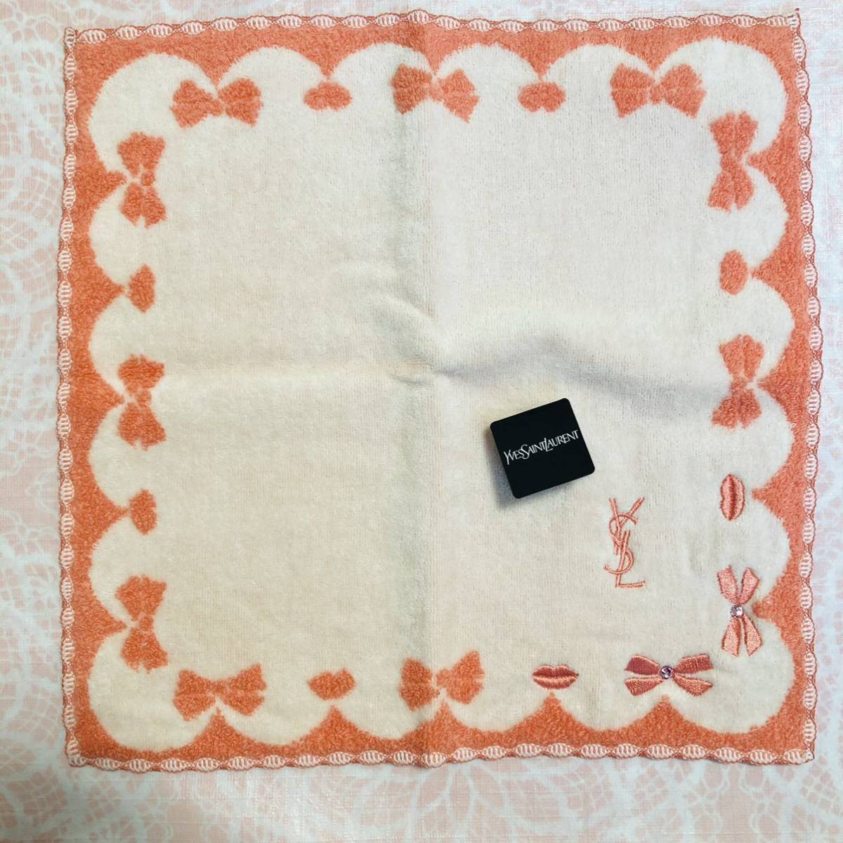 【人気柄】新品/イヴサンローラン/タオルハンカチ/正規品/未使用/YVES SAINT LAURENT/YSL/ハート/ハンカチ/タグ付き/ピンク/オレンジ 45