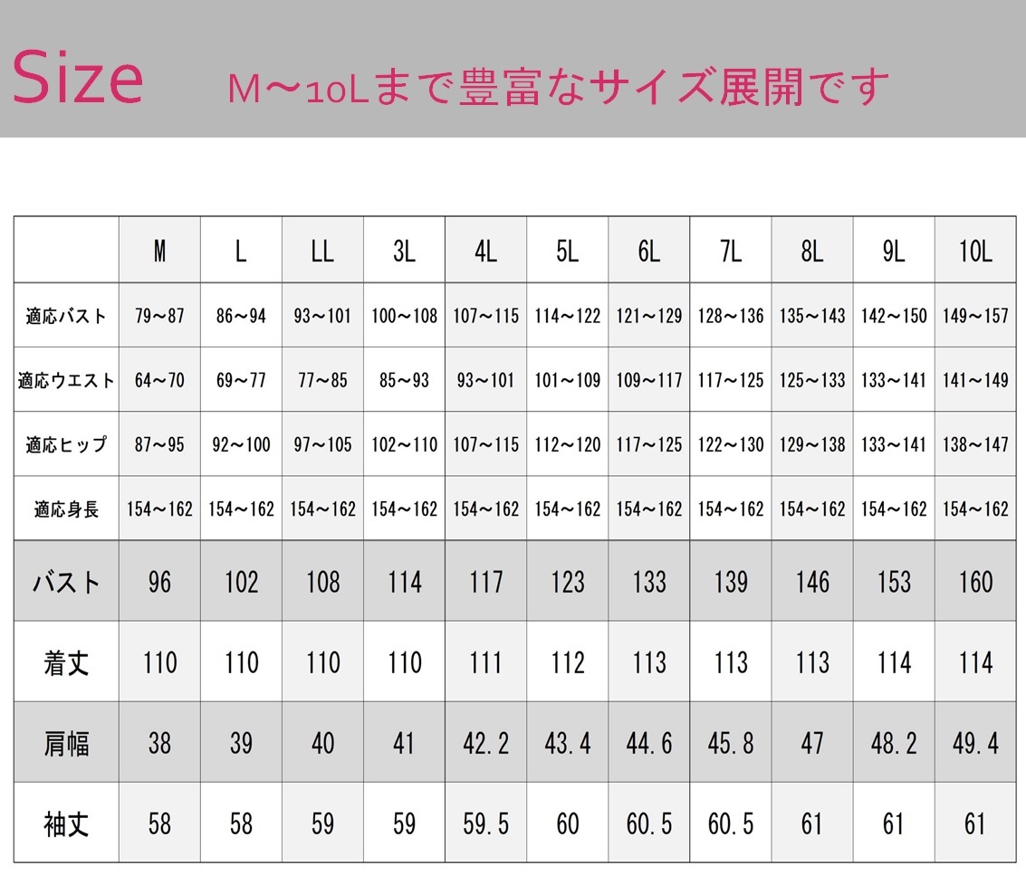 サイズ展開豊富な、M L LL 3L 4L 5L 6L 7L 8L 9L 10Lです。