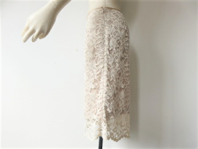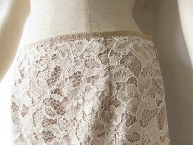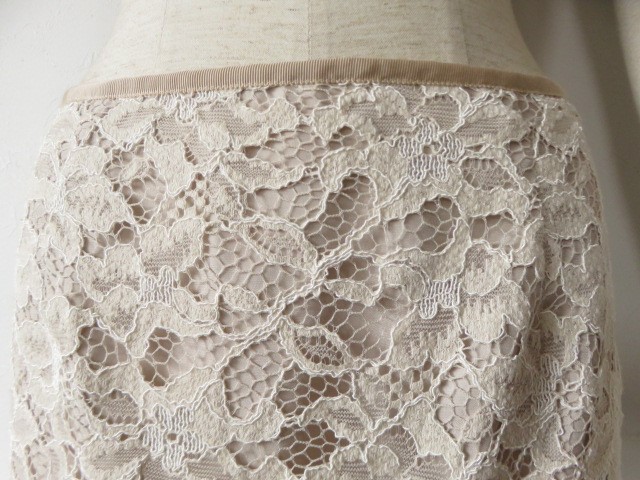 ■新品同様 上質美品 COUP DE CHANCE【C DE C】クードシャンス 高級 刺繍 レース スカート 9号 M【38】日本製 ベージュ 生成り b1235