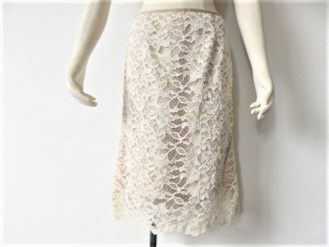 ■新品同様上質美品【C DE C】クードシャンス高級刺繍レーススカート9号M【38】日本製ベージュスカート 生成りスカート送料198円 b1235
