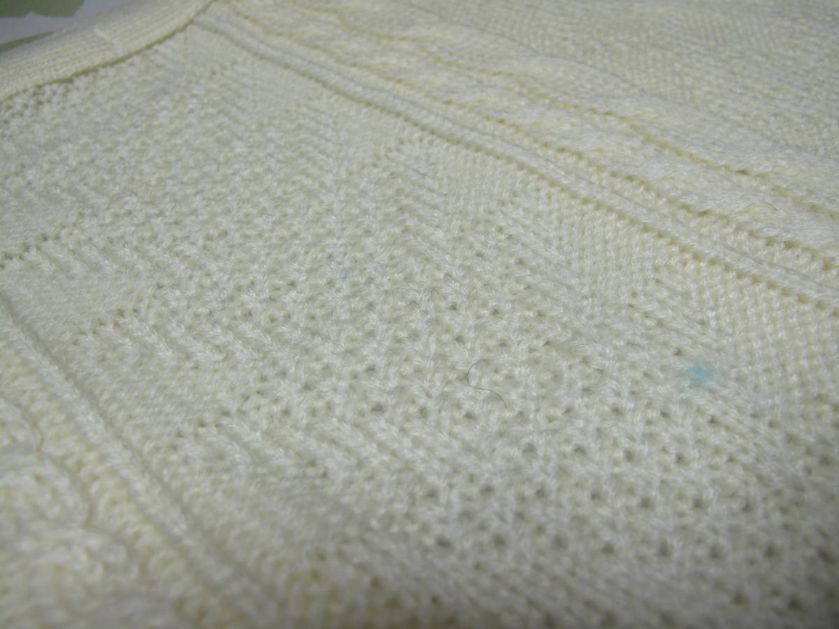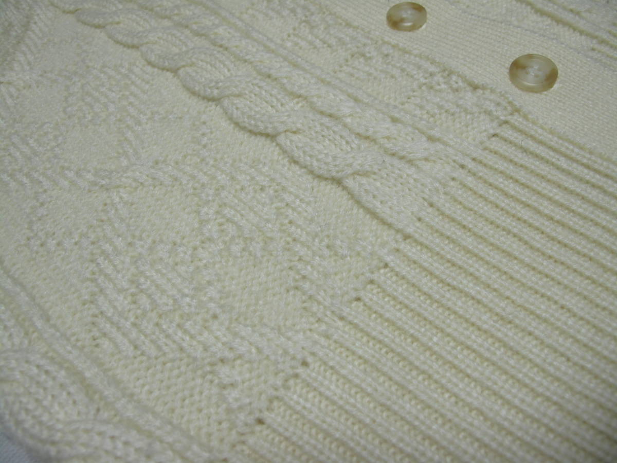 新品同様 ケーブル編み ニット カーディガン 毛30% Vネック 長袖 アイボリー F 日本製