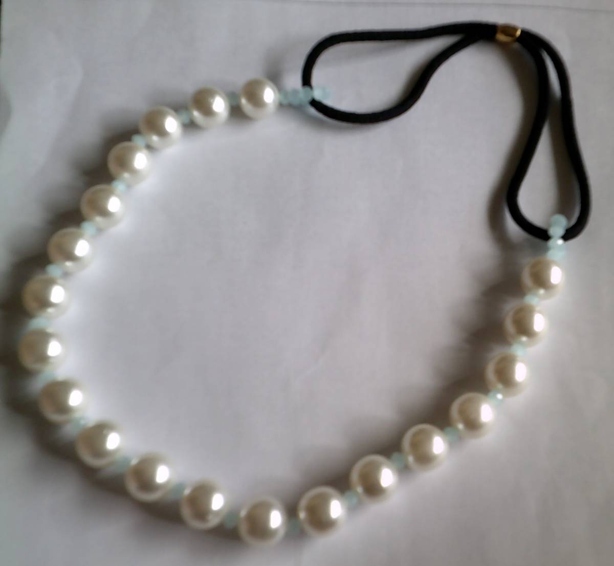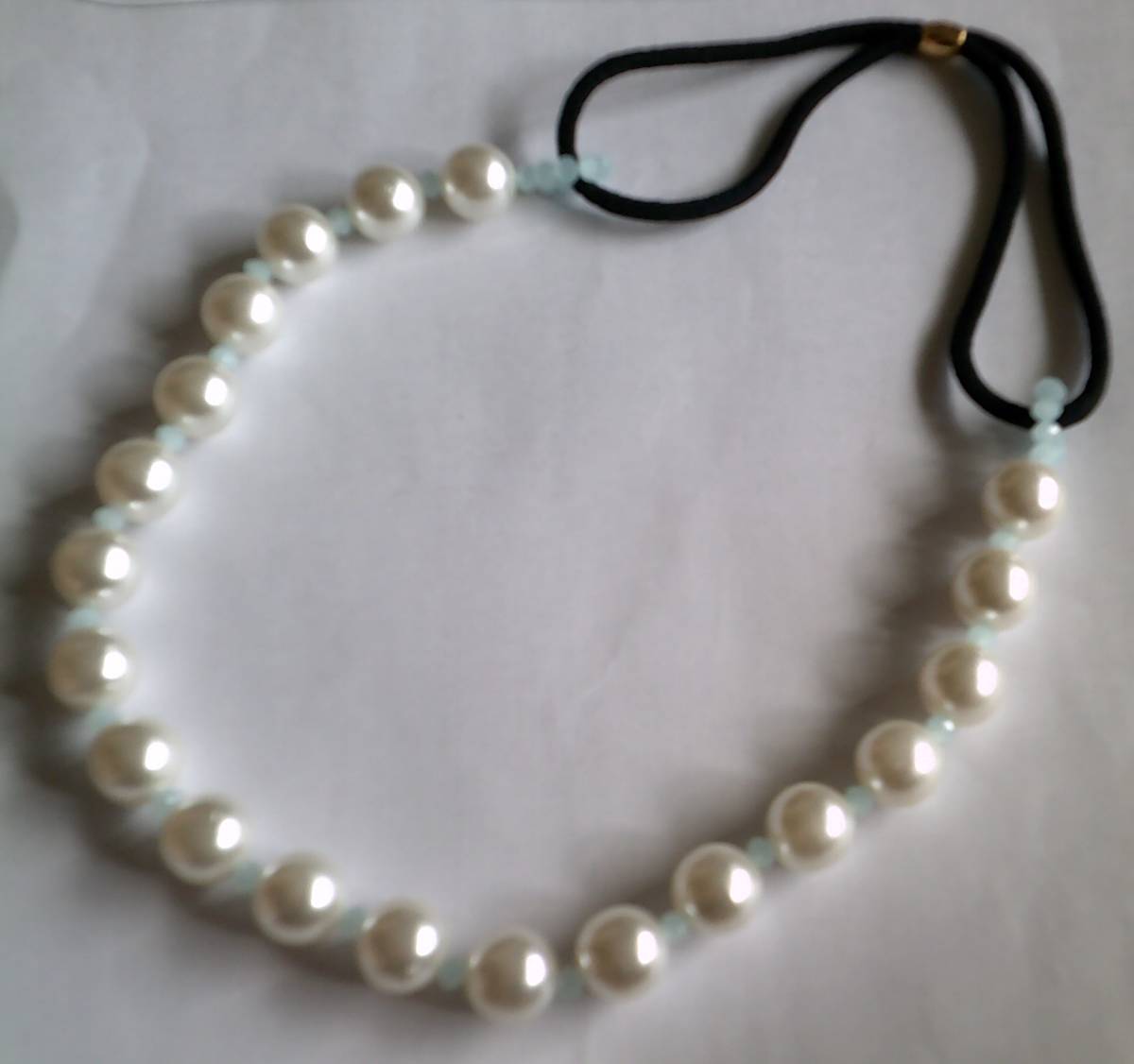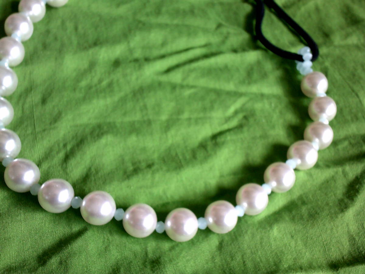 | 新品・ハンドメイドです。 フェイクですが、プラパールより丈夫なガラスパールを使用しています。 カラー 白 パール ミルキーアクア ガラスビーズ ゴムは黒・金具は金色です。 サイズ ゴム 16.5cm その他の部分 33cm | |||