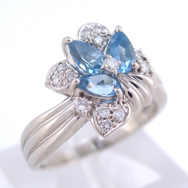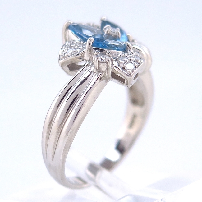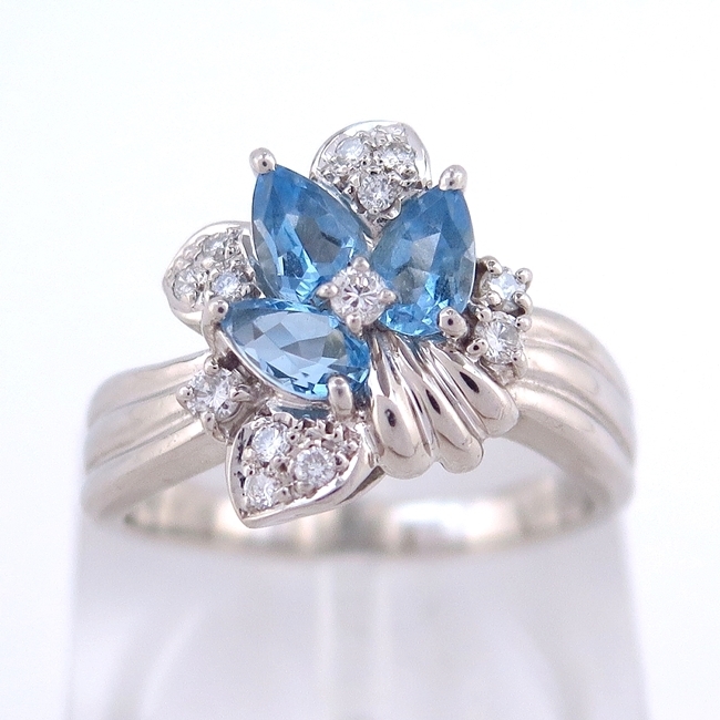 *Pt900 *アクアマリン 1.03ct *ダイヤモンド 0.25ct *モチーフサイズ(約):縦16.3mm×横14.4mm×厚5.9mm *アーム幅(約):2.6~5.2mm *重さ(約):11.2g *号数:19.5号 *ランク:A- ★アーム部小キズあり。 10020351