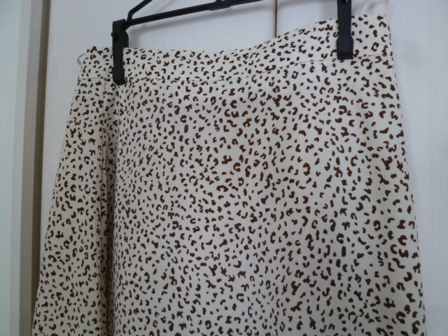 Rose Farm△アイボリー×茶ダルメシアンヒョウ柄フレアーロングスカートM/マキシ丈△SK714