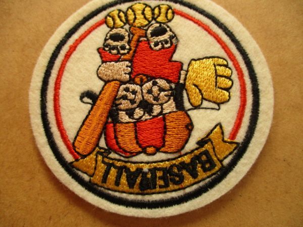 70s BASEBALL DOG 犬 いぬ イヌ 野球ビンテージ刺繍ワッペン/プロ野球レトロ昭和Patches読売キャラクターかわいいパッチ V155