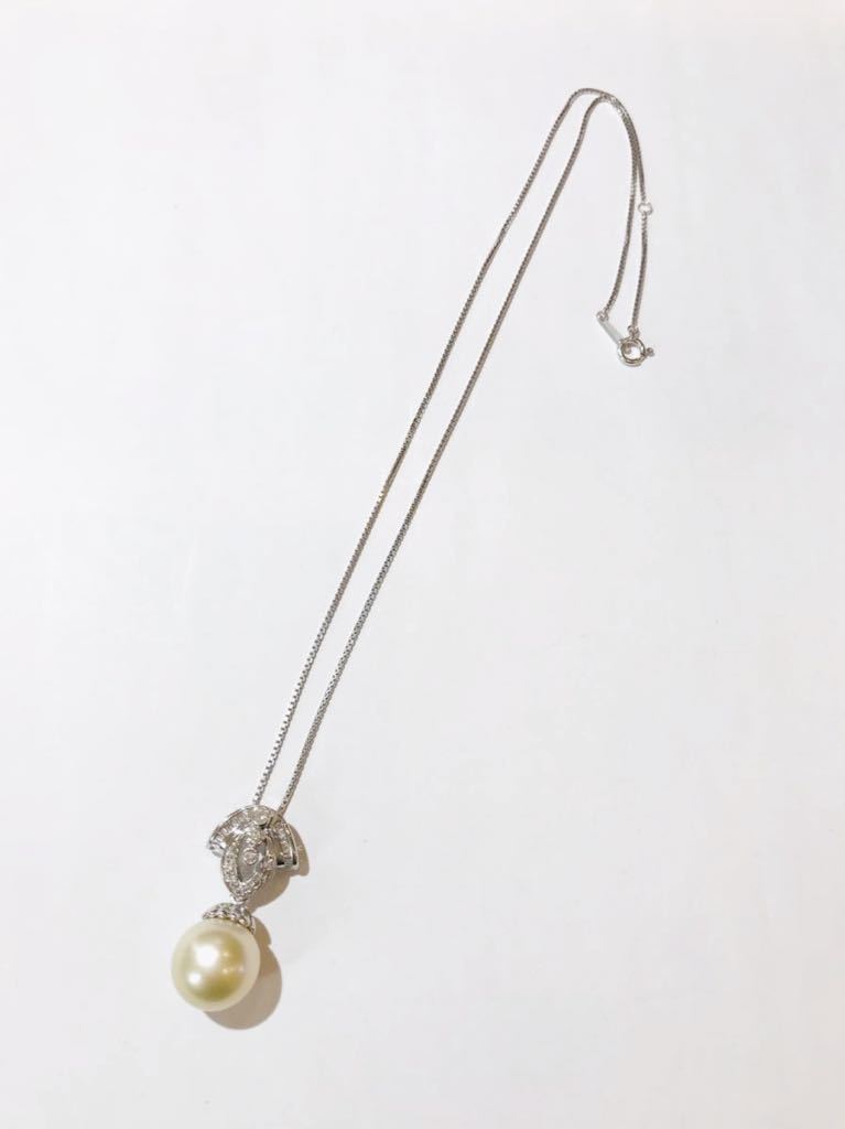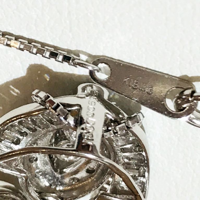 こちらは、K18WGベネチアン柄チェーンに、Pt900台ダイヤ多数&パール1個付きペンダントネックレスです。