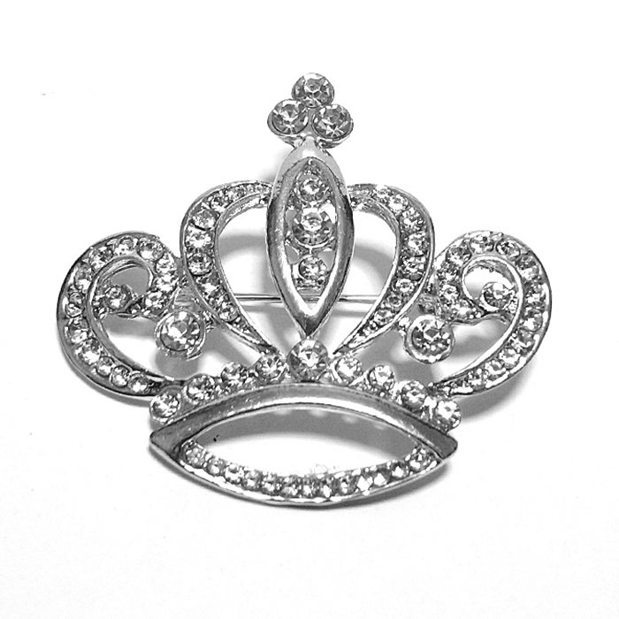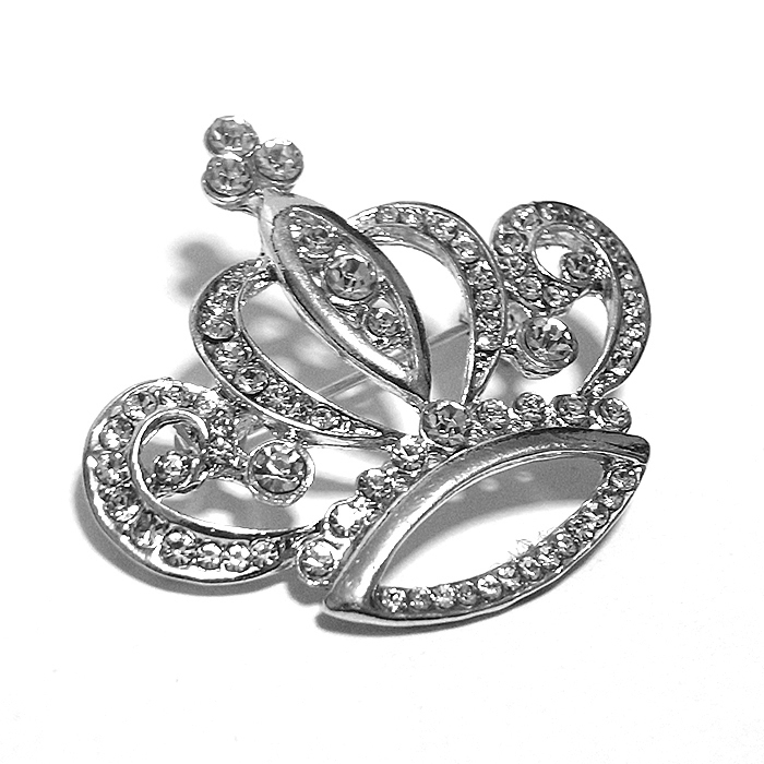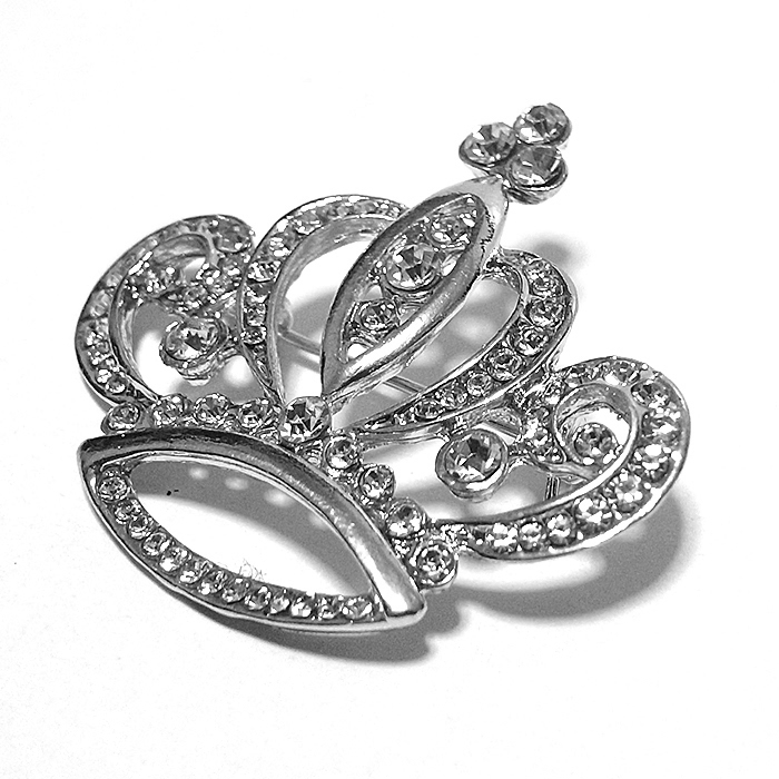 ☆送料無料☆ ブローチ 王冠 クラウン ラインストーン キラキラ シルバー bro-0390