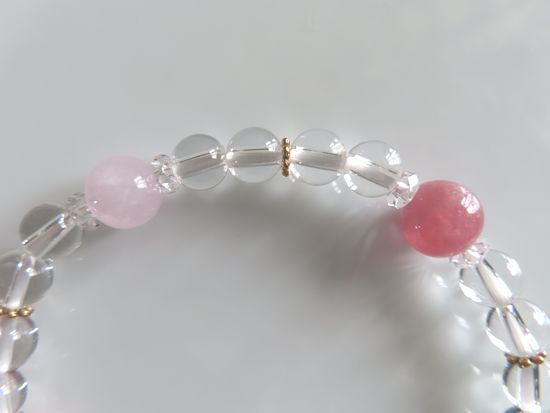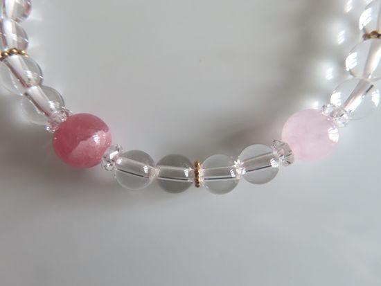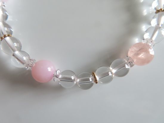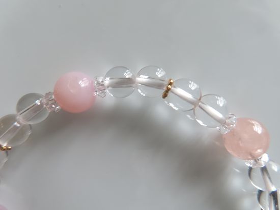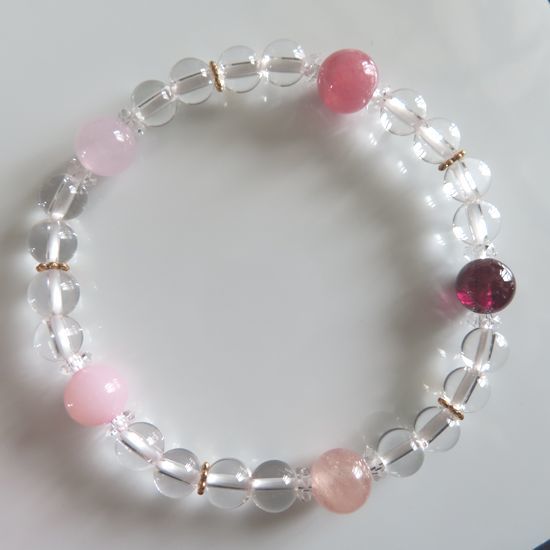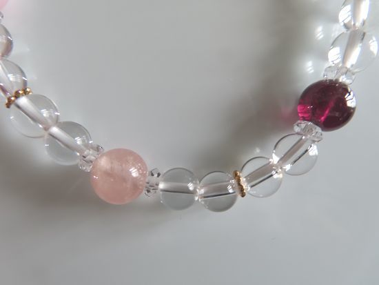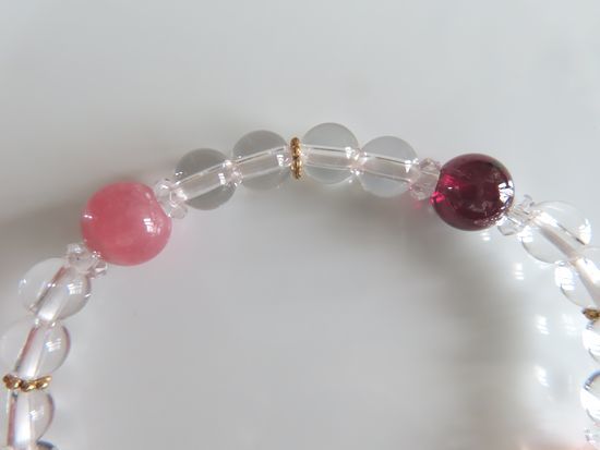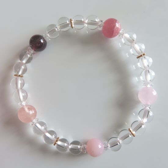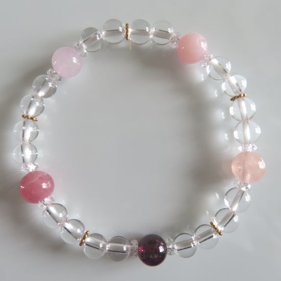 インカローズ、ピンクオパール、ガーネット、モルガナイト、ローズクォーツ、水晶のブレスレット | |||