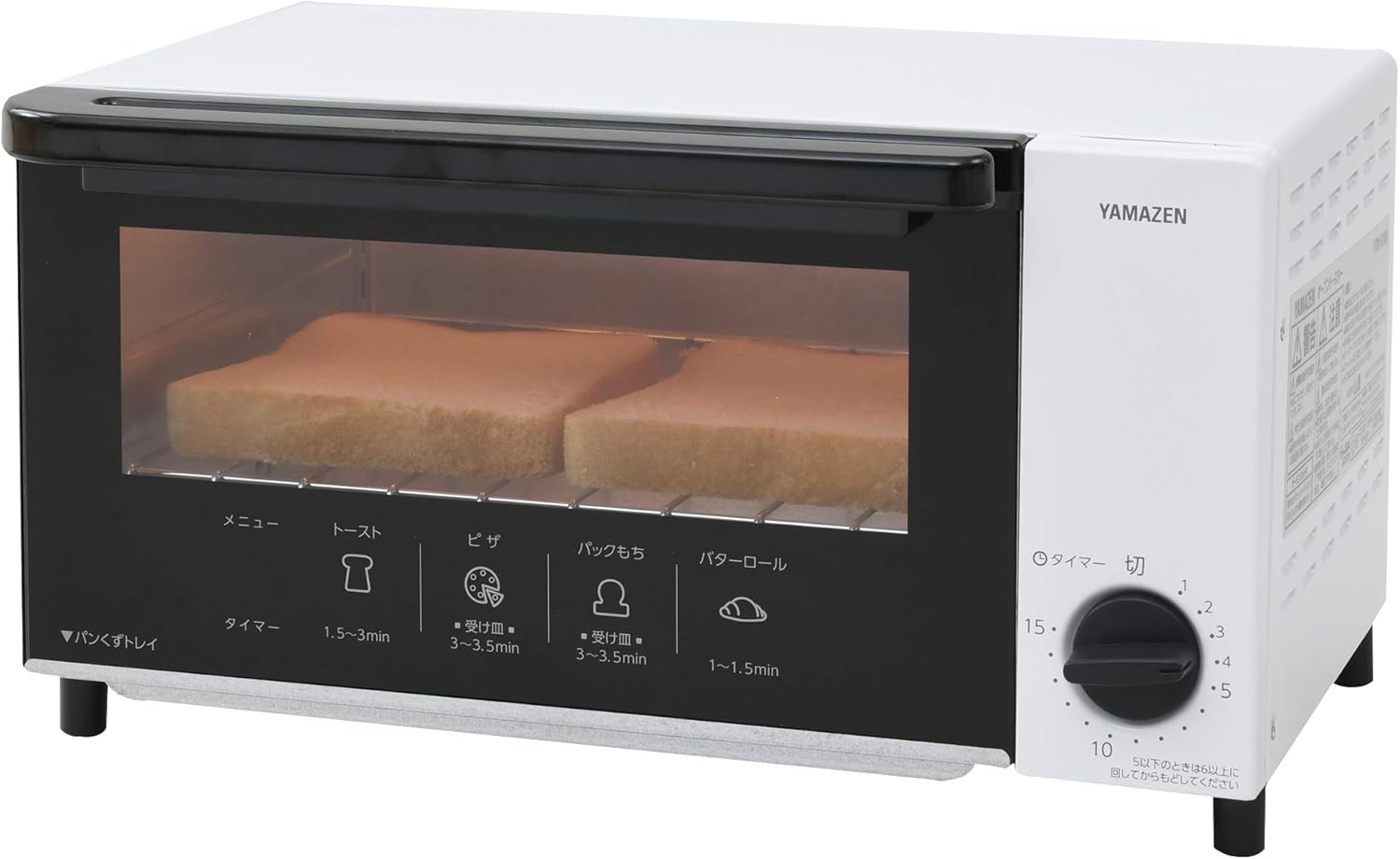 注目:★ コーナン/山善 オーブントースター タイマー15分 ベル付き ホワイト PTN-S100 2枚焼き ★ 完動美品