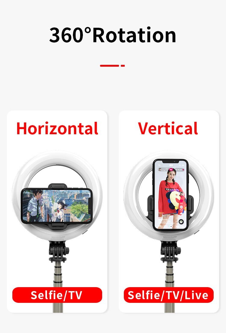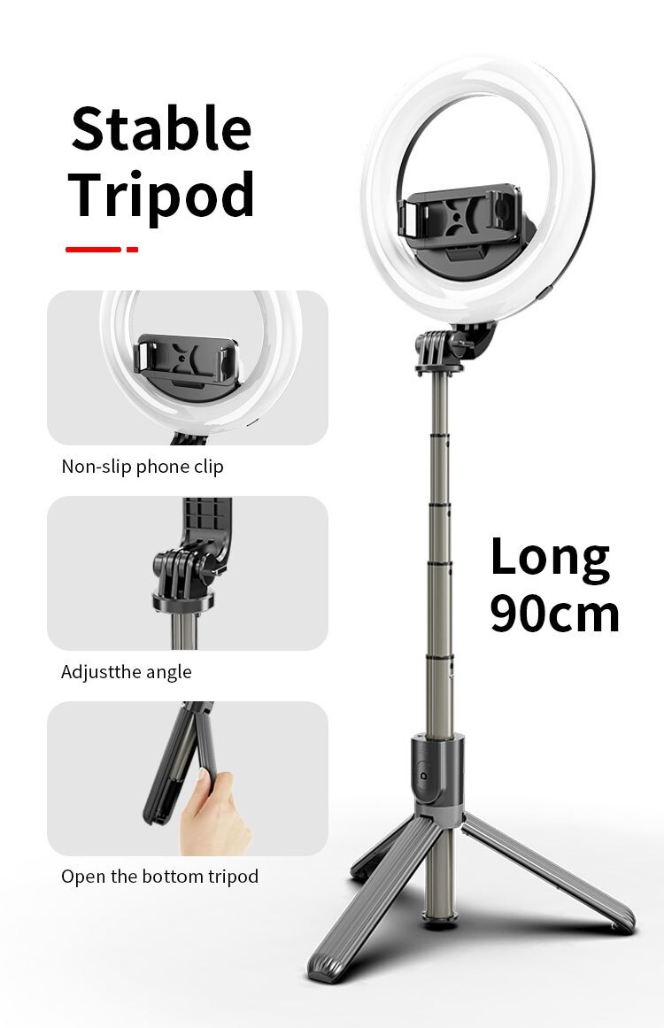 多機能ポータブル折りたたみselfieスティックリングライト三脚リモコン