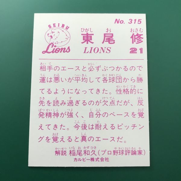 美品 1983年 カルビー プロ野球カード 83年 315番 西武 東尾   【管理NO:3-15】