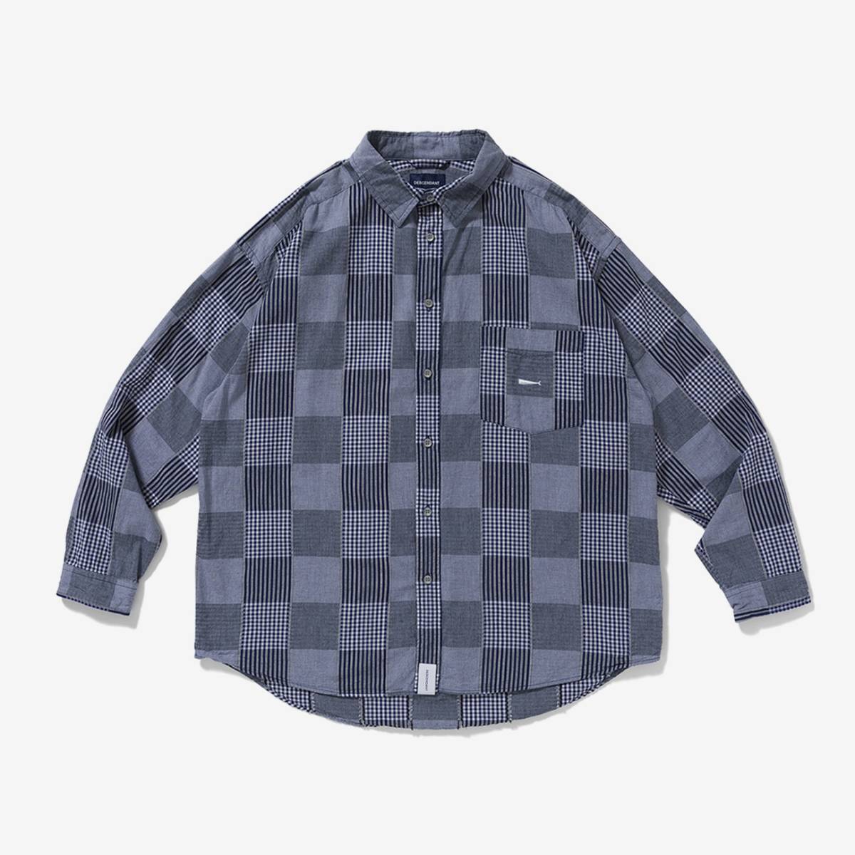 ●ギンガムチェックや千鳥格子やストライプなど、織りの異なるパターンを組み合わせた先染めのボタンダウンシャツ。