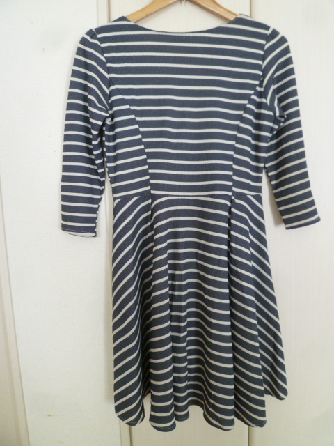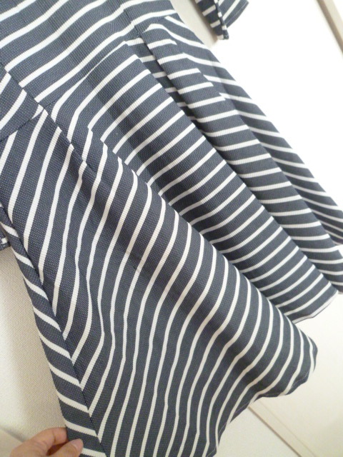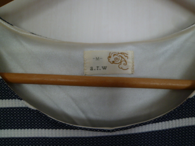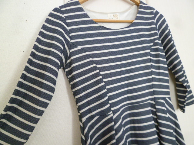 a.r.w/アロー△青紺×白ボーダーフレアーワンピースM/ブルーネイビーマリン系膝丈△217