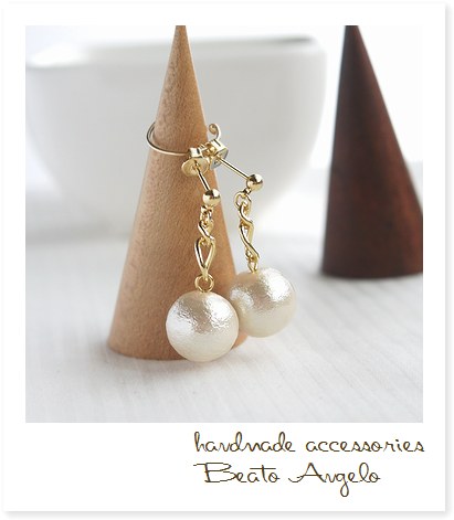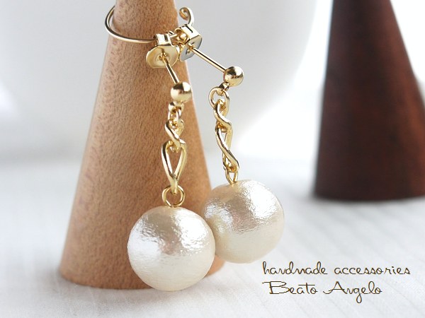 ◇◆+angelo+コットンパールのチェーンピアス(p-332)キスカ G 12mm ポストピアス フィガロ