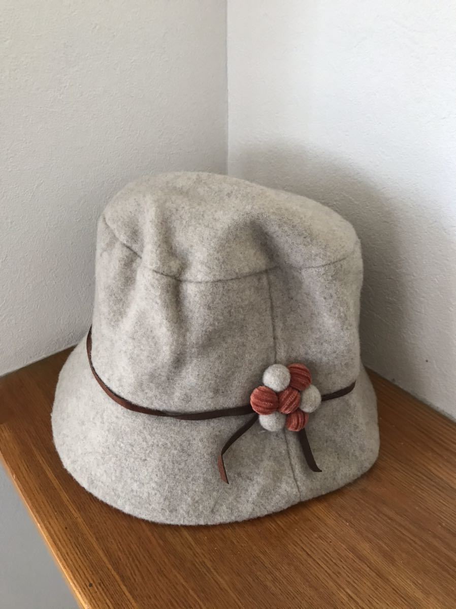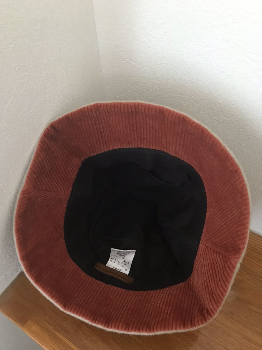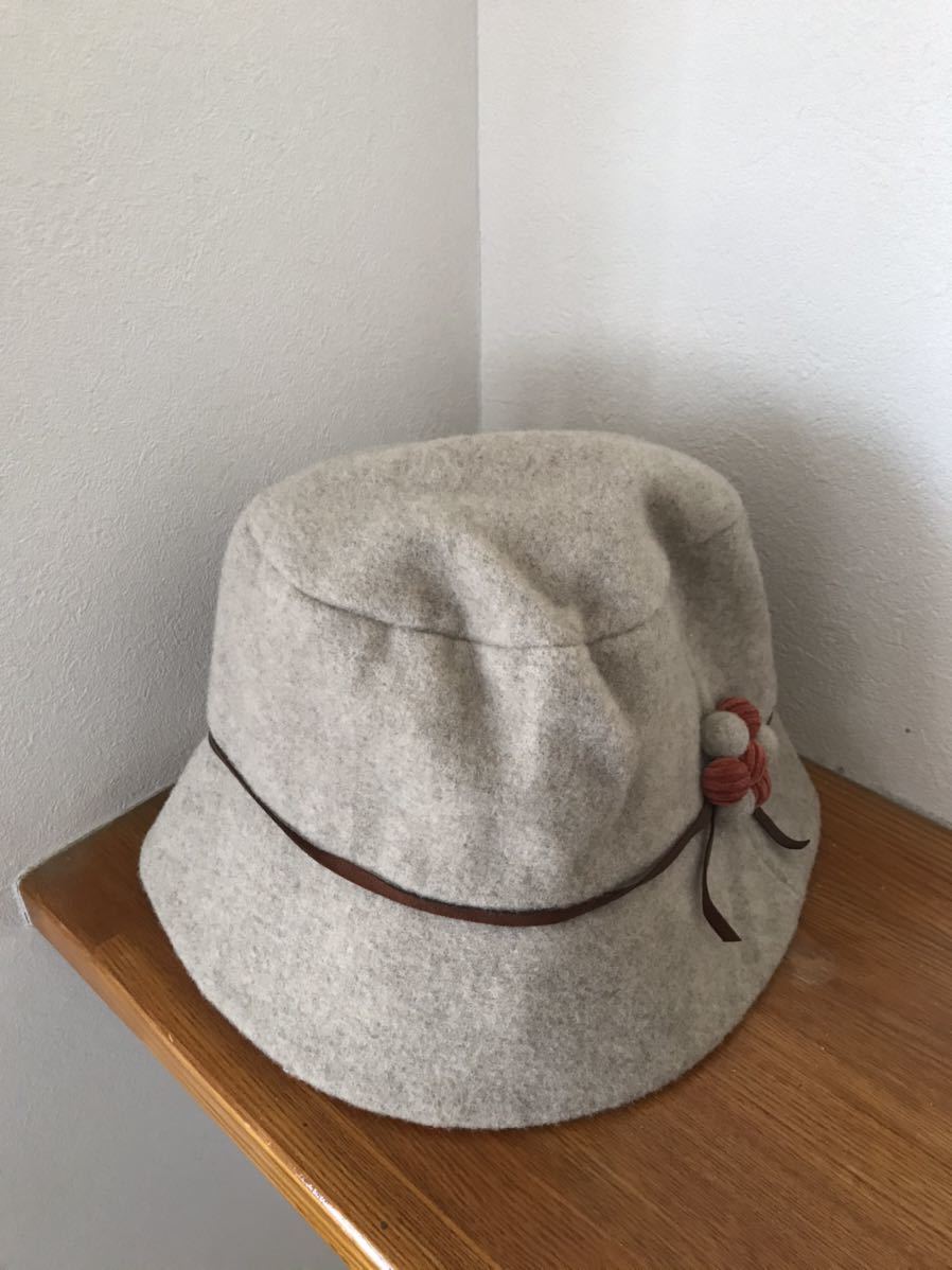 ベージュ基調で優しい落ち着いた印象の帽子になっており、つばの内側やチャームのオレンジが可愛いアクセントになっています。