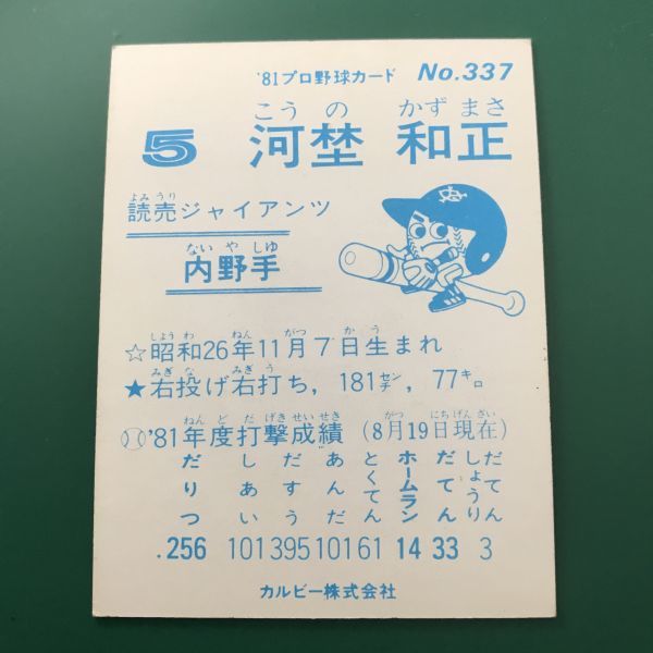 1981年 カルビー プロ野球カード 81年 337番 巨人 河埜   【管理NO:3-21】