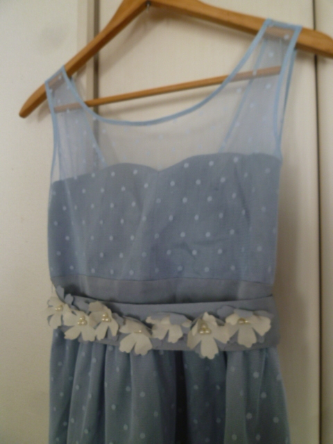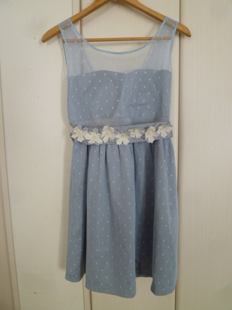 WILL SELECTION/ウィルセレクション△水色オーガンジーチュールレースドット柄お花ベルト付き姫系ワンピース1/結婚式パーティー二次会△24