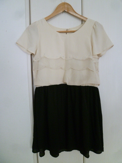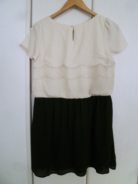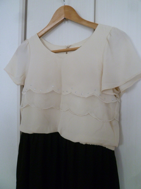 pageboy/ページボーイ△アイボリー×黒シフォン段フリルフェイクツイン風ワンピースM/フォーマル結婚式パーティーお呼ばれ二次会△28