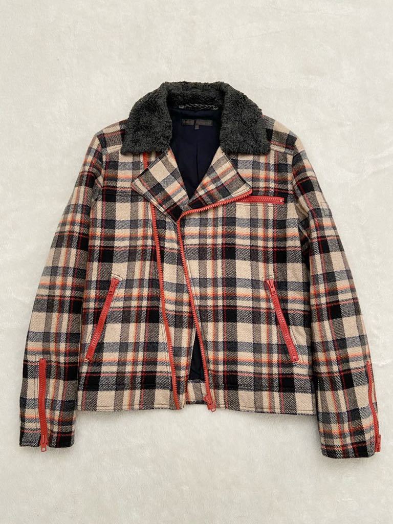 VERONIQUE BRANQUINHO size46 ライダースジャケット ツイード チェック ヴェロニクブランキーノ 美品 秋冬