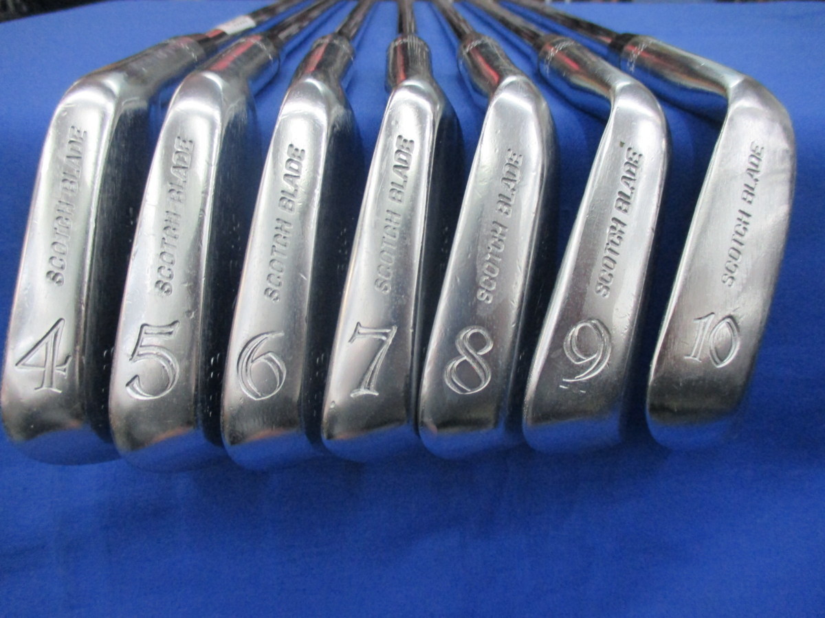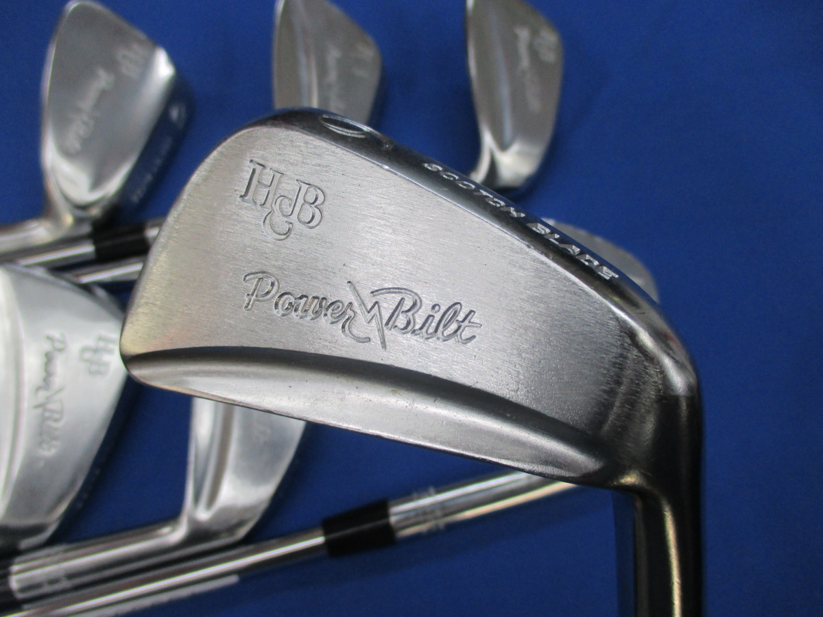 パワービルト スコッチブレード 7本(S200) ヘッドの古いメッキを剥離して銅下、ニッケルクロムでリメッキしました。(バックフェースに粗削りをかけてからメッキしてます、カッコイイです)シャフトをダイナミックゴールドS200を5番で長さ38インチにしました。お金かかってます(長さ5番で約37,75インチ 重量427g)*10/9/8/7/6/5/4…7本 *シャフト・・ダイナミックゴールドS200 (ラベルナシ)*硬さ…S200*グリップ・・・Golf Pride*他にも、クラブを多数出品しております。 是非、ご覧ください。
