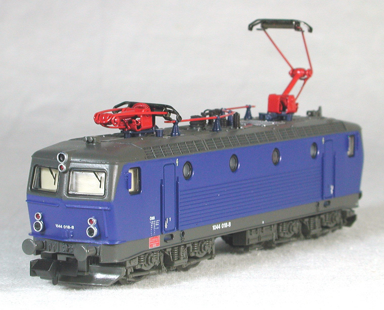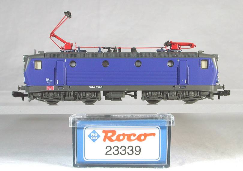 ュプル制御が可能なように改造が始まり、2009年までに全て新しい型式呼称である1144型へと変わってしまいました。 このモデルは、1044.0型でベンチレータが改良される前のオリジナル形態の車輌にEUROデザインを施す前のダークブルー単色下地塗装の装いとなってます。実際に実機もこの状態で運用されていましたが、その期間は大変短く画像も余り残ってないようで最早見ることは出来ない幻 (?)の存在となりましたが、唯一モデルでは見ることが出来ます。 この商品は、、珍しさと受けを狙っての商品化だったのでしょうか?当然、2001年に旧ロコ社によって販売された単年度限定製品で、ROCO社は、Nゲージから撤退していますので絶版品なってます。また、FLEISCHMANNでの再生産は、機関車の性格上無いと思います。あ る意味、コレクターアイテムかも知れません。 |