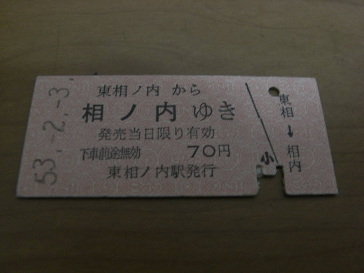 石北本線 東相ノ内から相ノ内ゆき 70円 昭和53年2月3日 東相ノ内駅発行 ●現 東相内・相内駅