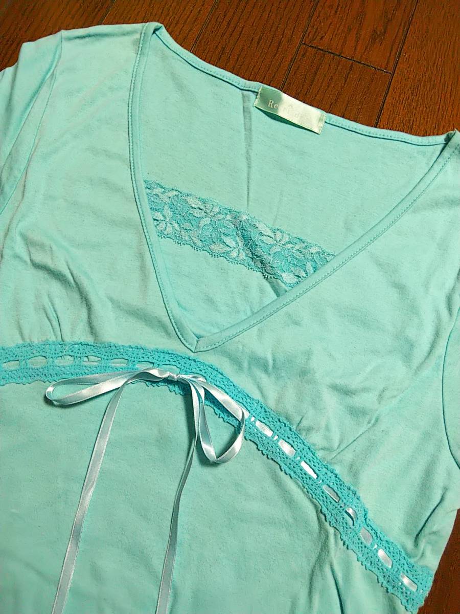 ☆美品 リボン付きカットソー 半袖 ライムグリーン L☆
