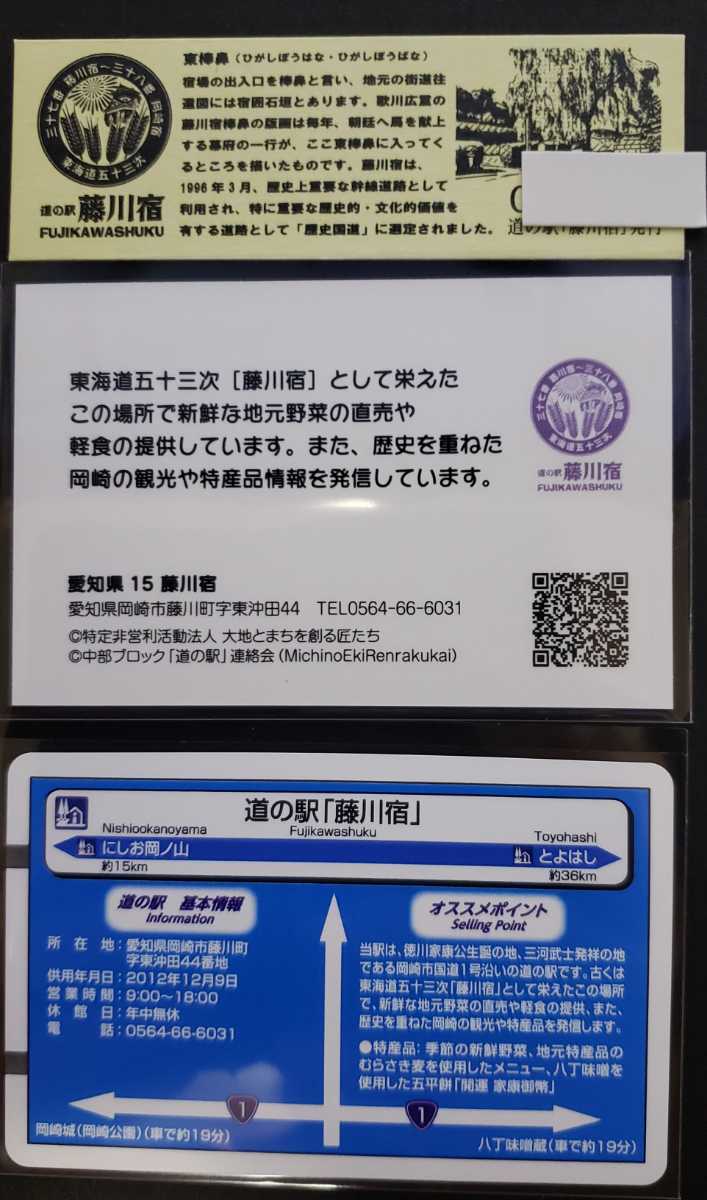 | ♪商品説明♪ | 道の駅 藤川宿◆記念きっぷ+記念指定券+道の駅カード 3点セット◆愛知県岡崎市 徳川家康 ☆厚紙補強にて送付いたします。 |