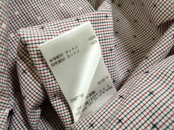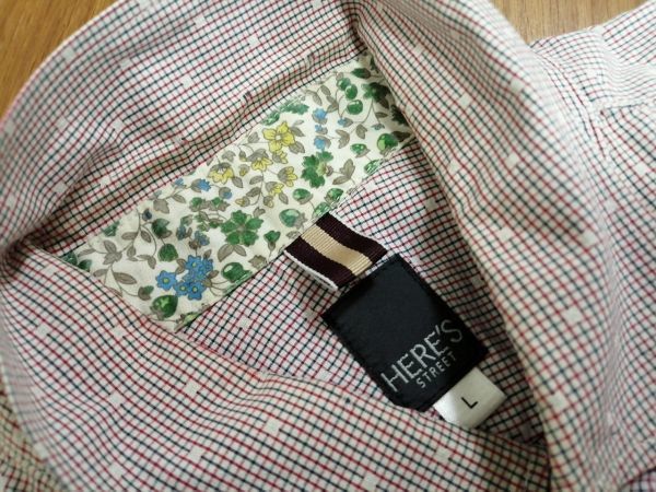 kkyj4045 ■ HERE'S STREET ■ ヒアーズストリート シャツ トップス 長袖 ボタンダウン チェック ドット 植物 ボタニカル コットン 赤系 L