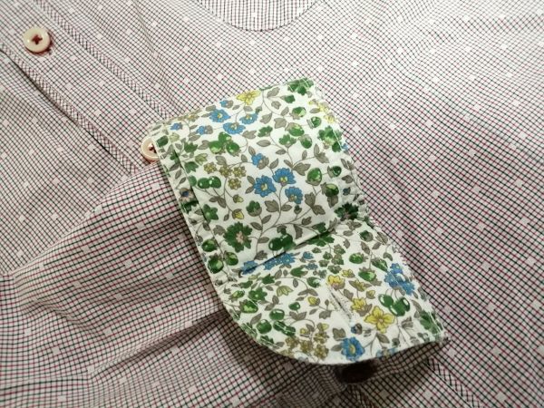 ■ HERE'S STREET ■ ヒアーズストリート シャツ トップス 長袖 ボタンダウン チェック ドット 植物 ボタニカル コットン 赤系