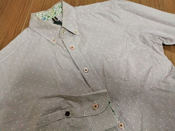細かいチェック柄にドットの入ったコットン生地のボタンダウンシャツです。