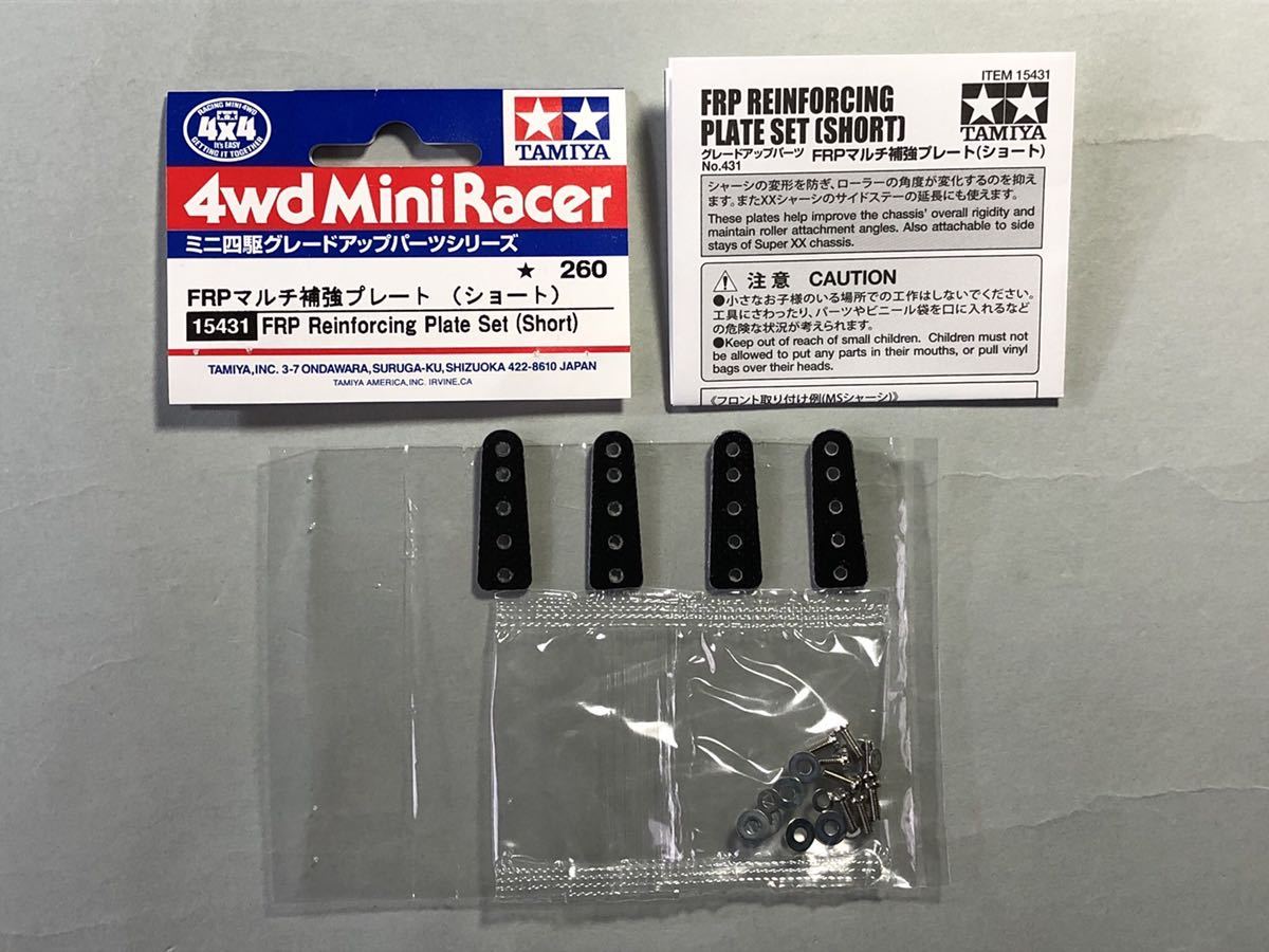 TAMIYA FRPマルチ補強プレート (ショート) ミニ四駆 グレードアップパーツシリーズ ITEM 15431です。中身確認のため開封しました。長期保管、未使用品です。写真のモノがすべてです。神経質な方の入札はご遠慮下さい。ノークレーム・ノーリターンで、お願いします。入札よろしくお願いいたします。 S01-112-062602