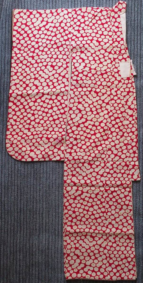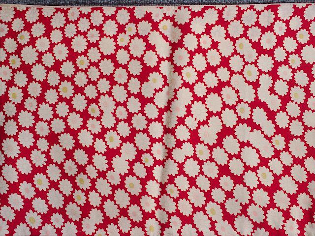 ☆リメイク用・レトロ着物*赤地菊文様・正絹☆縮緬リメイク素材お細工パッチワーク生地☆