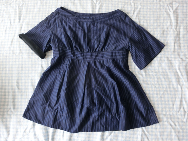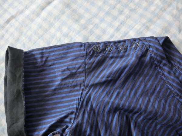 色は濃紺と青のボーダーとストライプ 袖裾の裏が黒なので、折り返しても素敵です。 素材:綿60%シルク(絹)40% 別布綿100% 日本製 サイズ38(M) 肩幅54cm胸幅41cm袖丈14-17cm着丈65cm 他にも洋服、バッグ、靴、小物、本を出品していますので見てください。