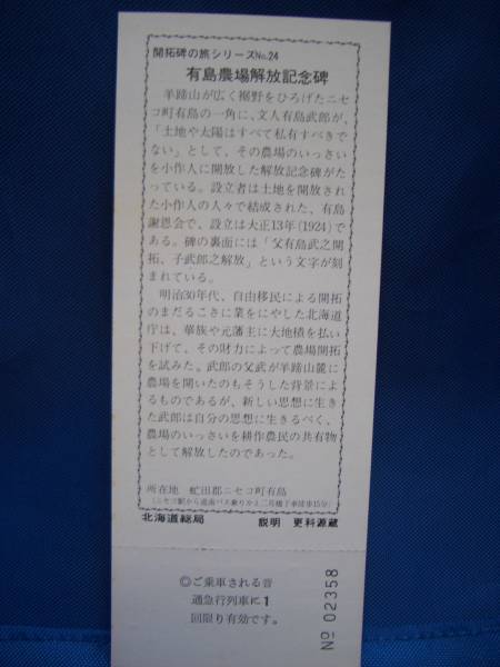 | ■【北海道総局】開拓碑の旅シリーズ No.24 急行券■s49 | |