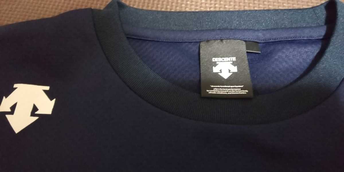 新品デサント濃紺、赤、ロゴ白、半袖ストレッチトップス
