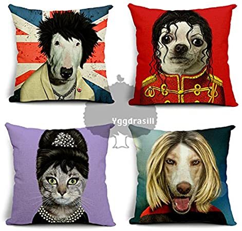 YGG★人気 カート・コバーン クッションカバー ソファー ニルヴァーナ ファブリック インテリア 綿麻 犬 dog ドッグ