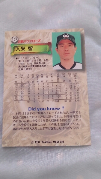 大阪近鉄バファローズ入来智!!1997BBM159元広島カープ巨人ヤクルトスワローズ |