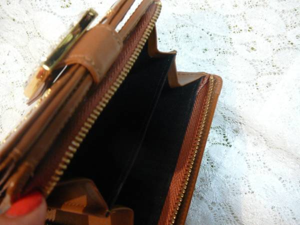 DRESS CAMPドレスキャンプ キャメルカラースタッズ折財布Lジッパー蛇腹