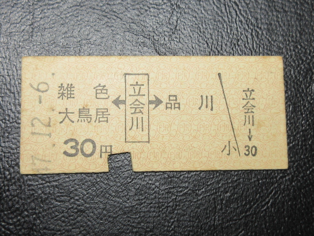 ★国鉄乗車券・硬券『昭和47年12月6日・雑色/大鳥居←[立会川]→品川・30円区間・矢印式乗車券』レアキップ切符・昭和レトロ★JNR609