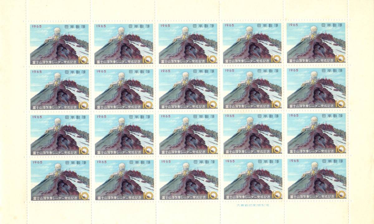 昭和40年1965「富士山頂気象レーダー完成記念/剣ヶ峰気象レーダー・シート」10円切手20枚・未使用【送料無料】「熊五郎の切手」00800053