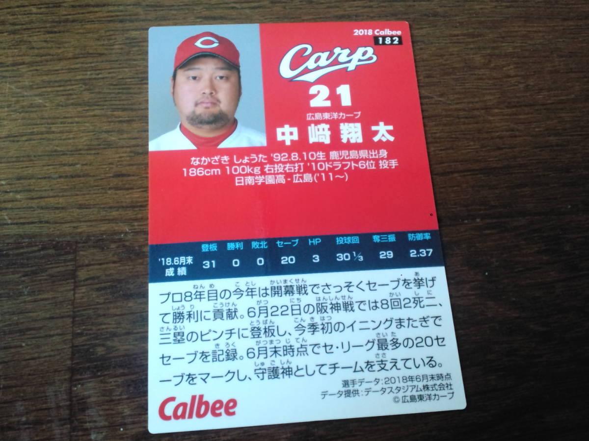 [同梱可]★中﨑翔太(広島東洋カープ)☆レギュラーカード(182)★2018年カルビープロ野球カード第3弾☆
