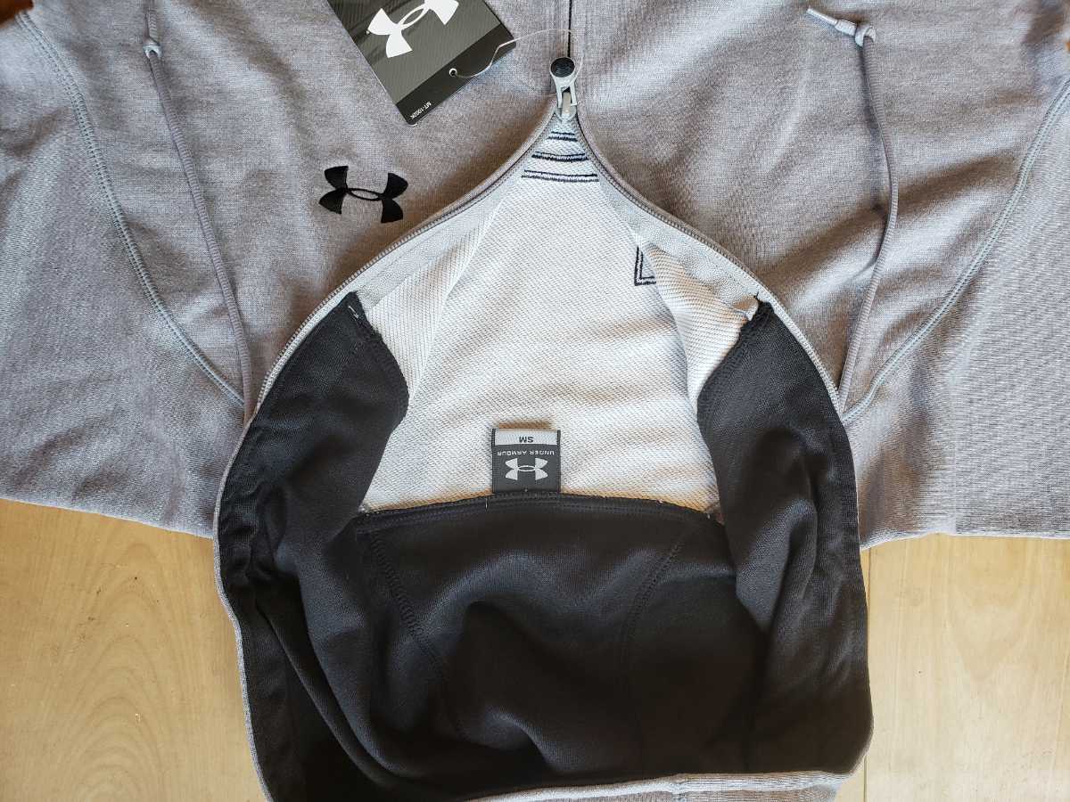 試着のみ UAアーマースェット ロゴフルジップフーディー TRH/BLK SMサイズ
