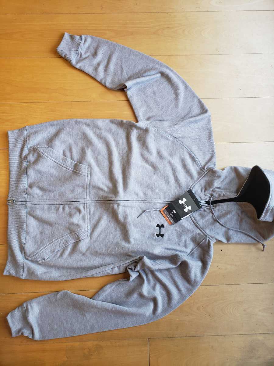 試着のみ UAアーマースェット ロゴフルジップフーディー TRH/BLK