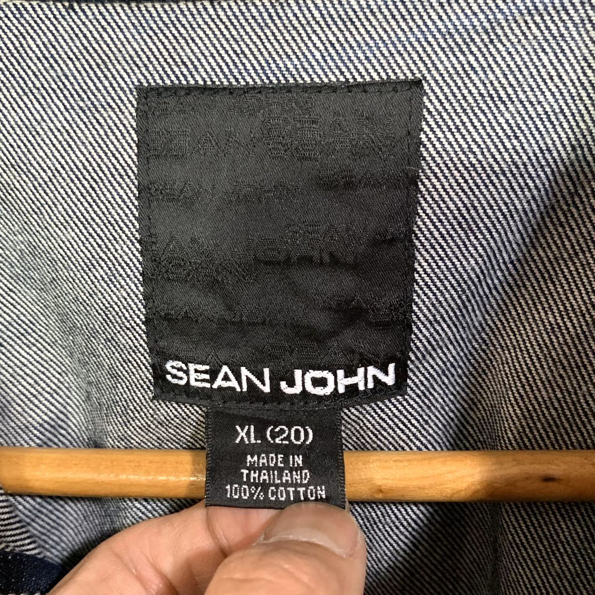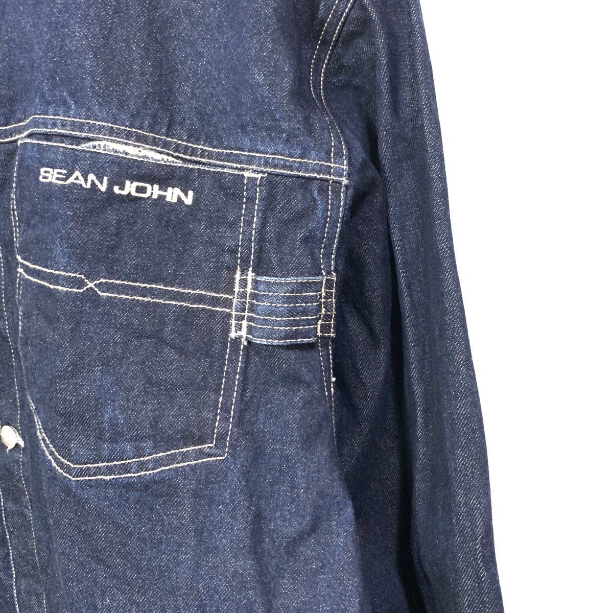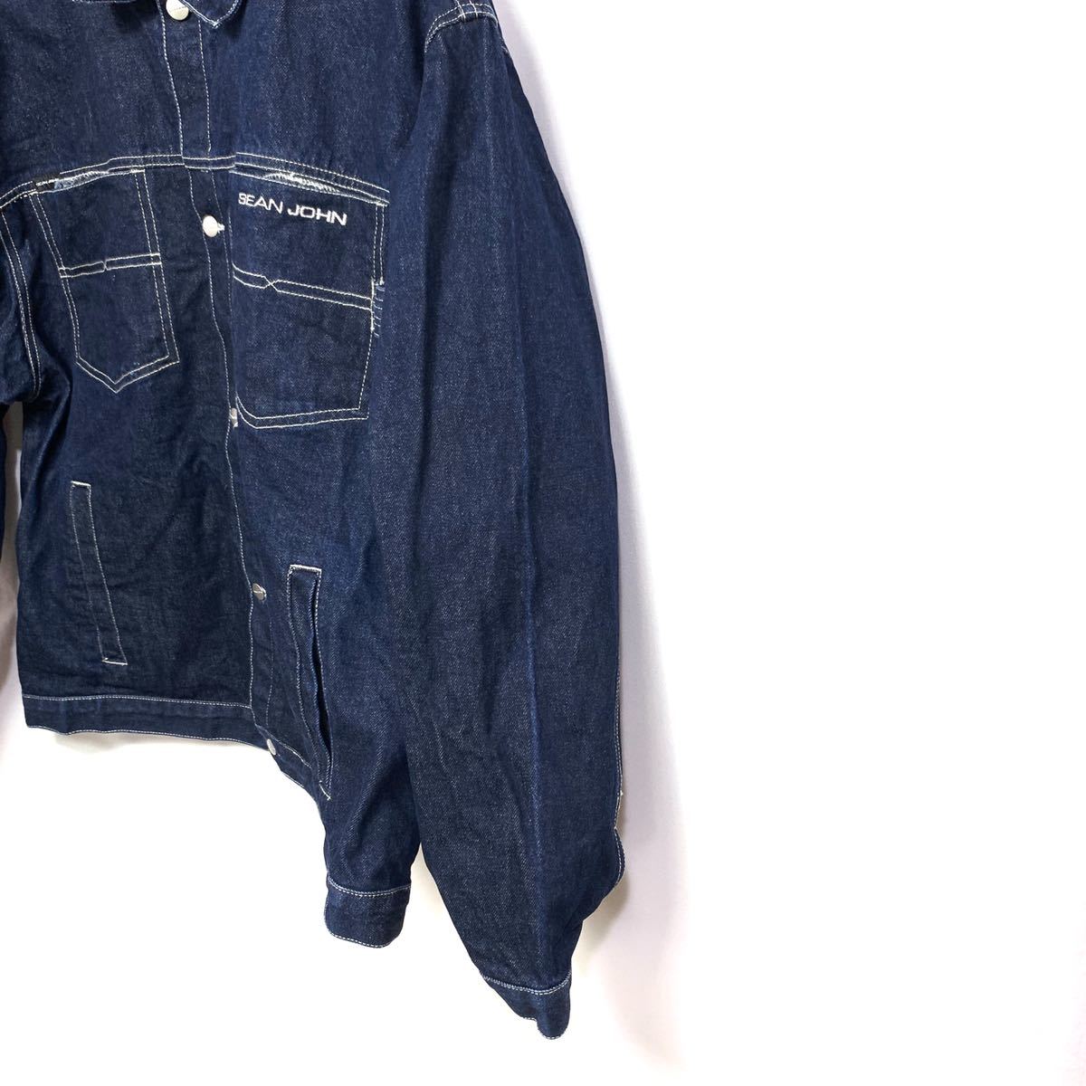 ■子供用 ビッグサイズ SEAN JOHN ショーン ジョン ボックスシルエット 白ステッチ インディゴ デニムジャケット 古着トラッカージャケット