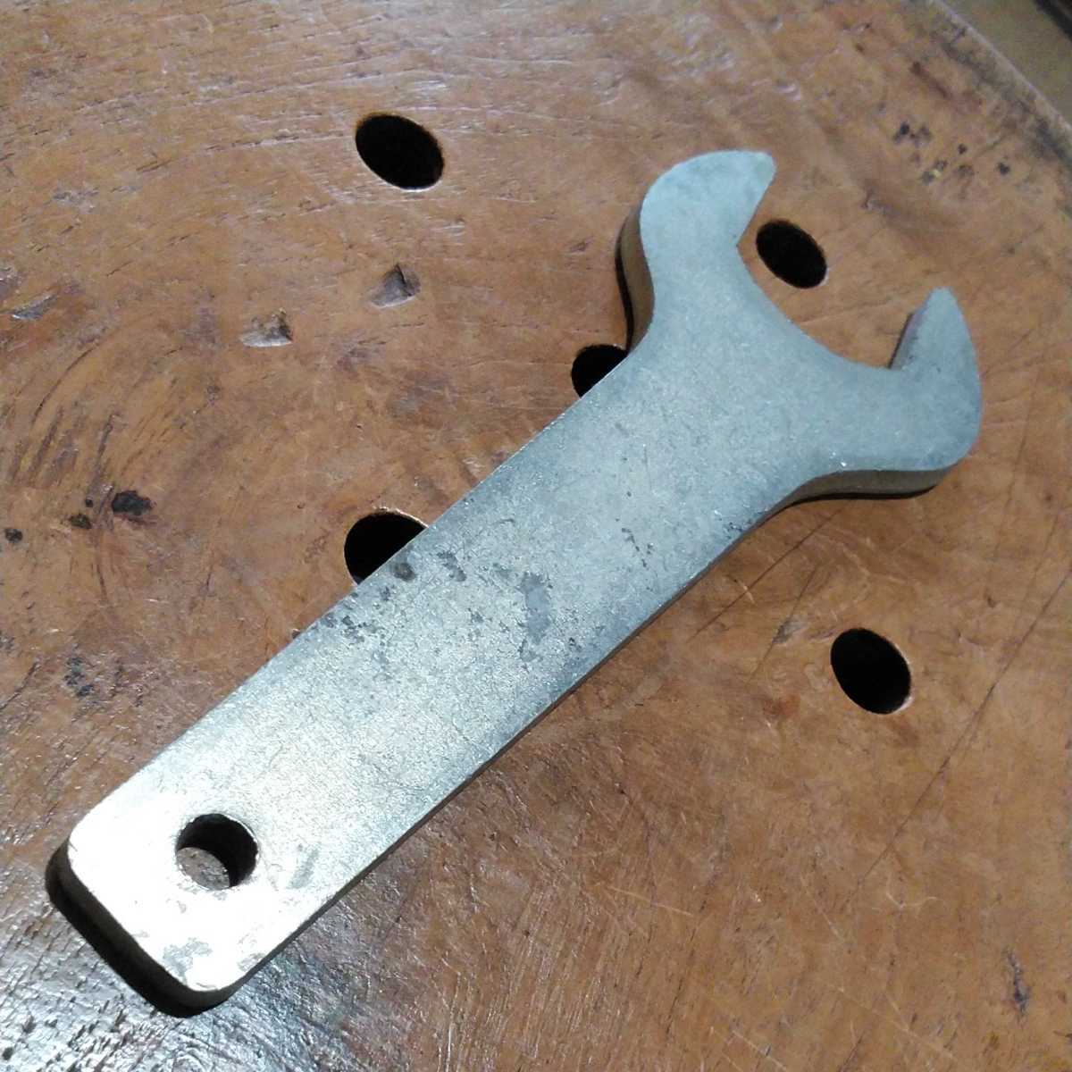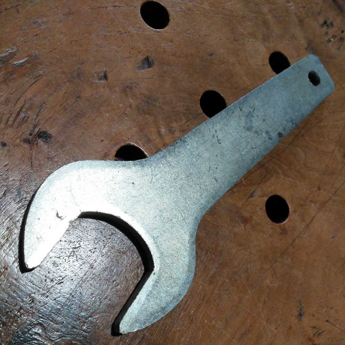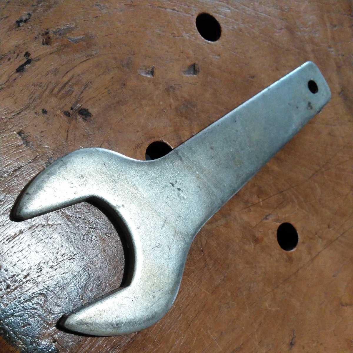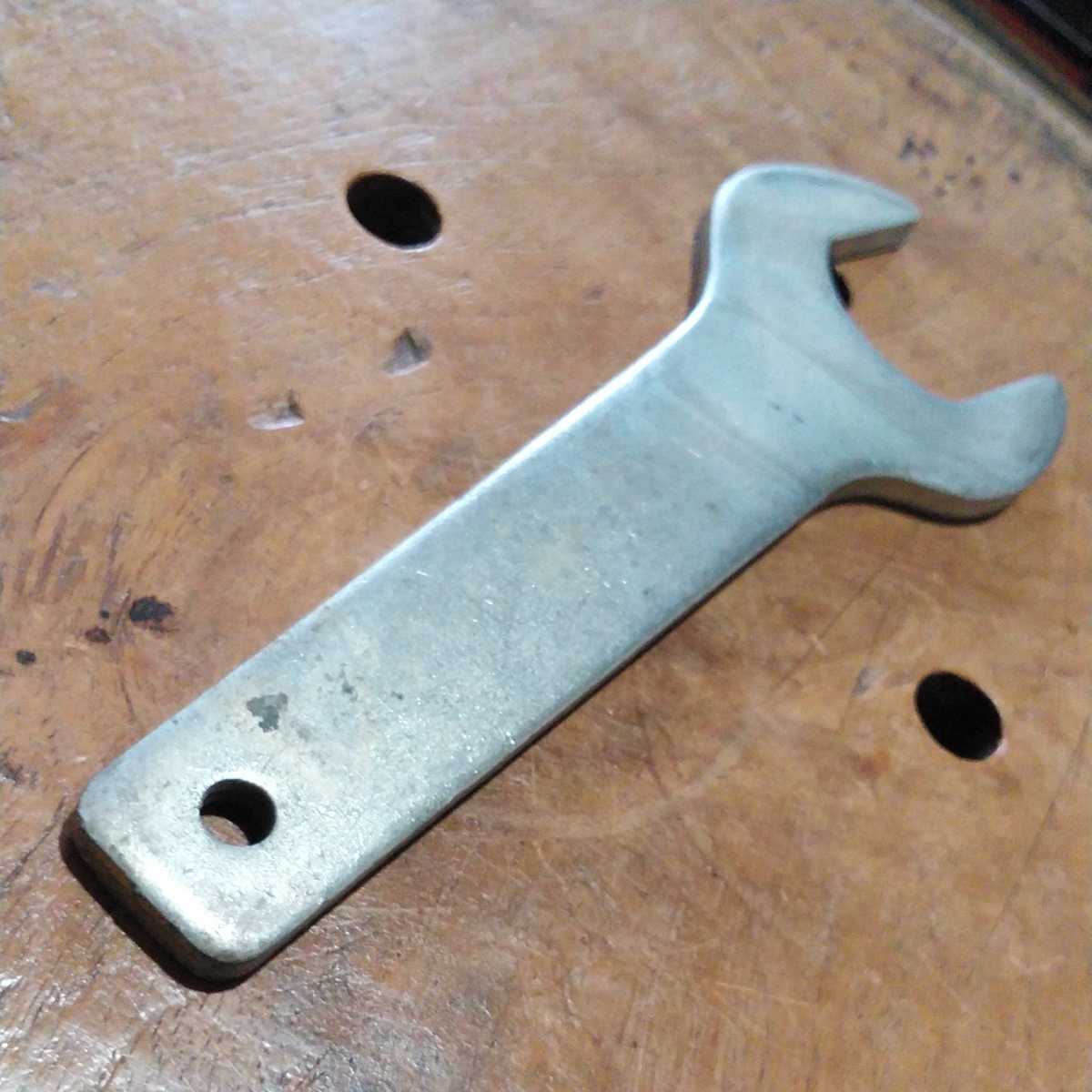 こちらは、メーカー不明の車載工具 片口レンチ ハンマーレンチです。
