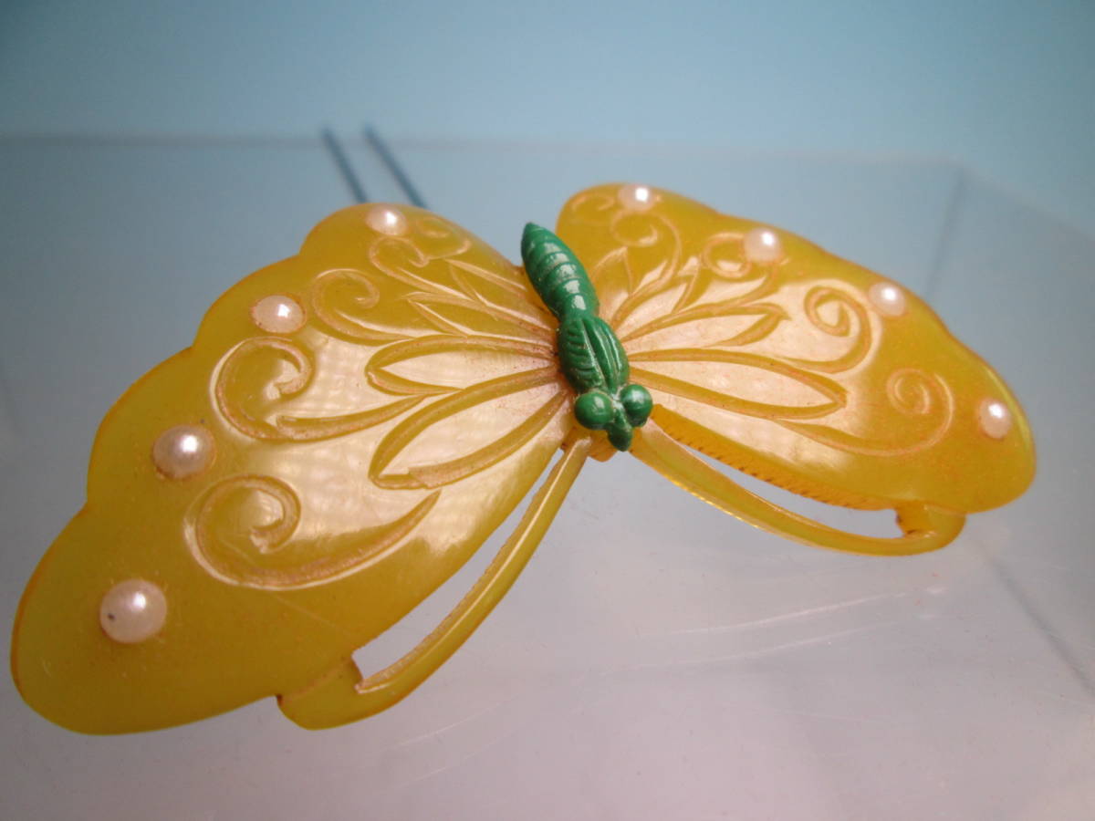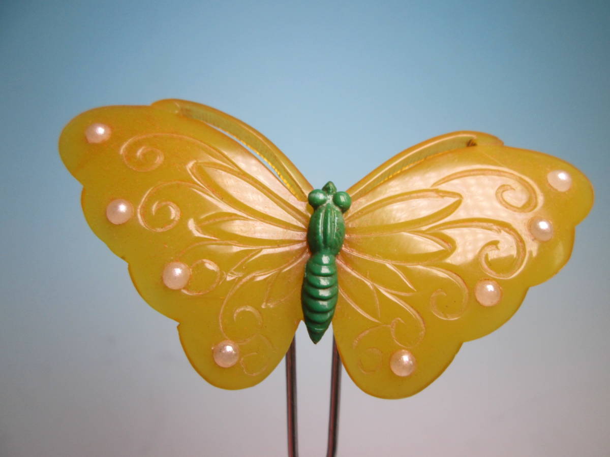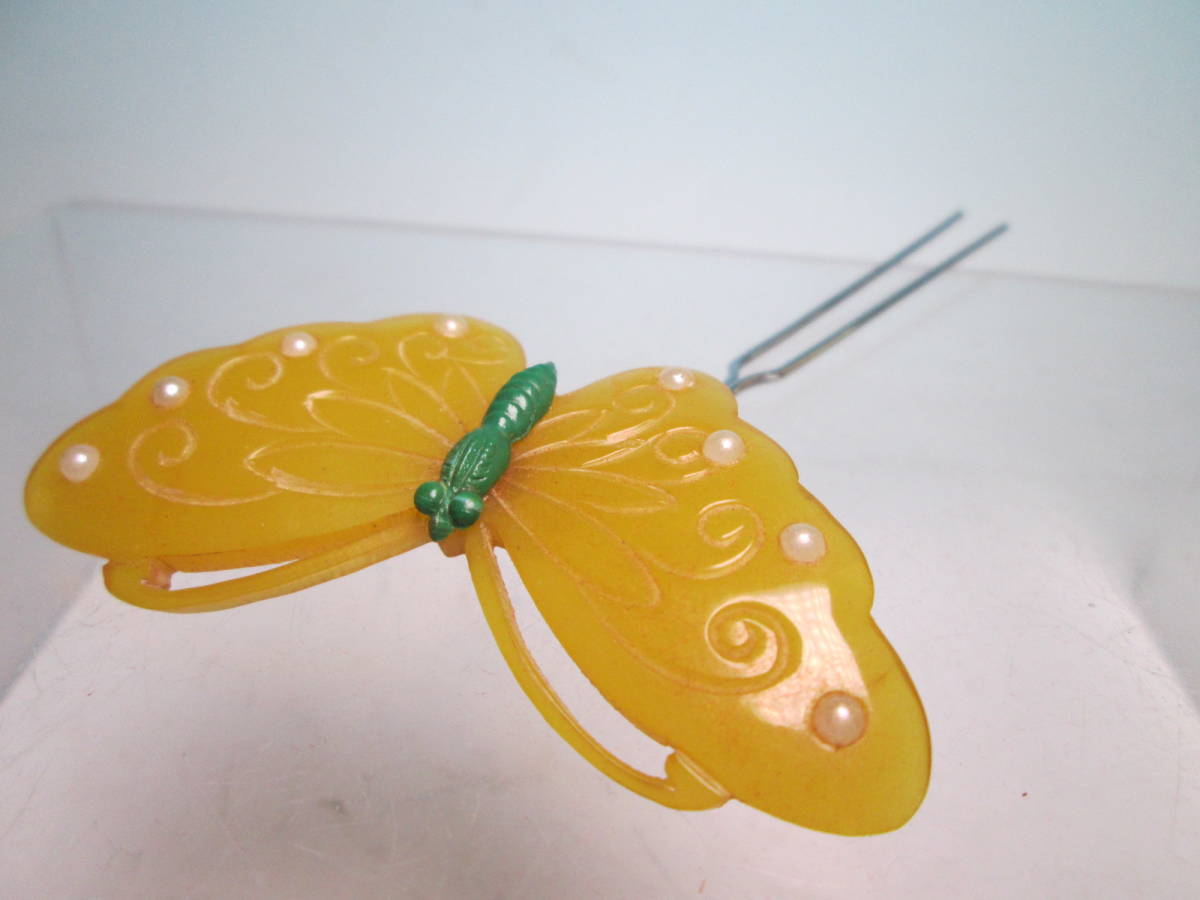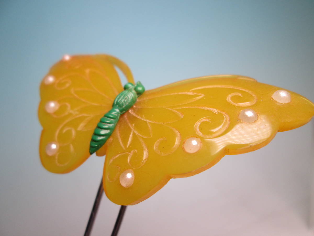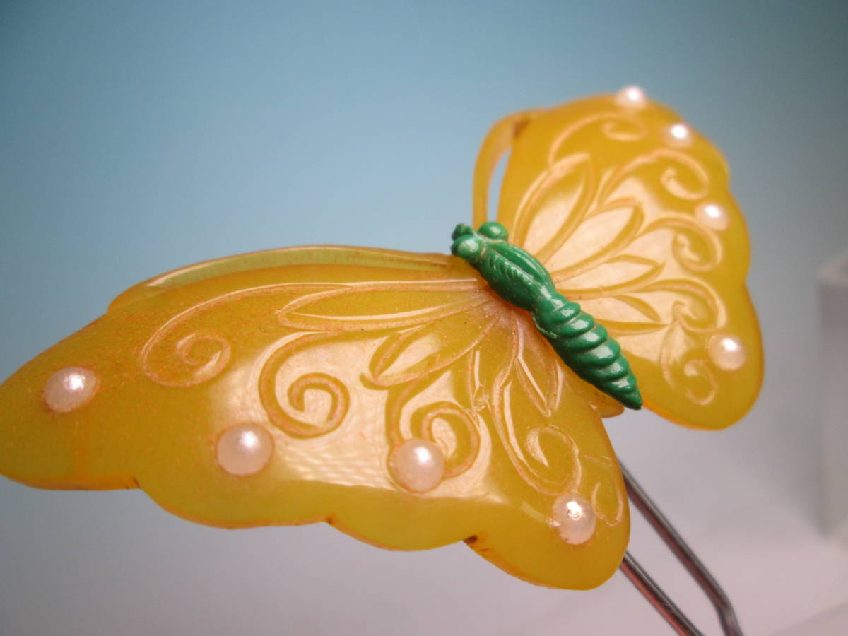 蝶の羽は樹脂のようです。ベビーパールが飾られています。